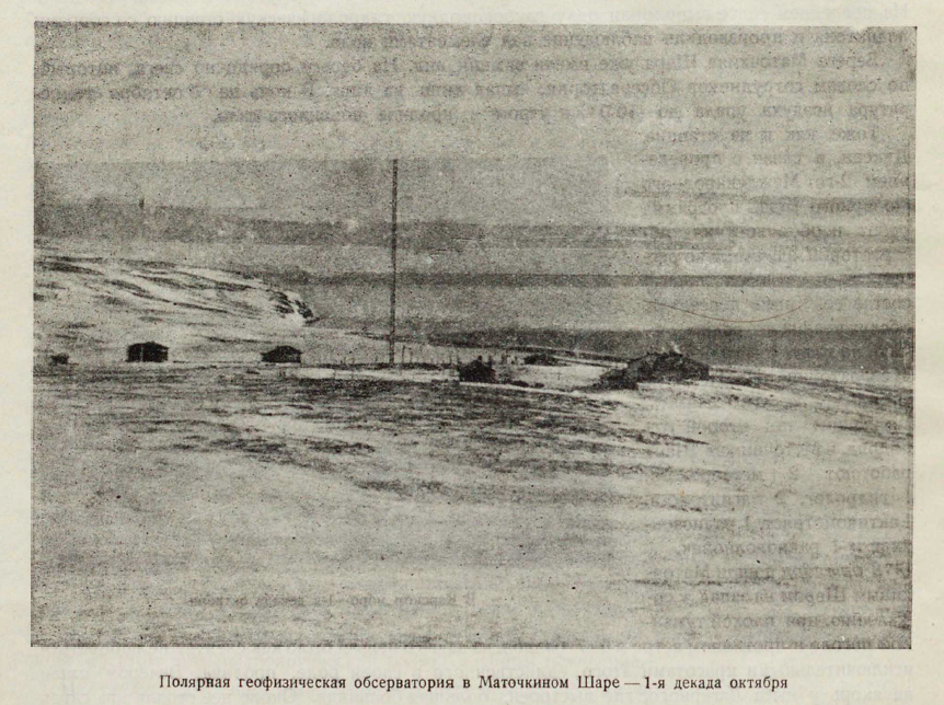 Здесь нам, по заданиям, предстояло сменить зимовавших сотрудников Обсерватории и самим на целый год оказаться пленниками в царстве льдам ночи. Нас с радостью встретили старые зимовщики — рассказали нам о своем житье и тех особых условиях, в которых приходилось работать. Они очень интересовались- тем, что делается на „Большой Земле“, и с жадностью