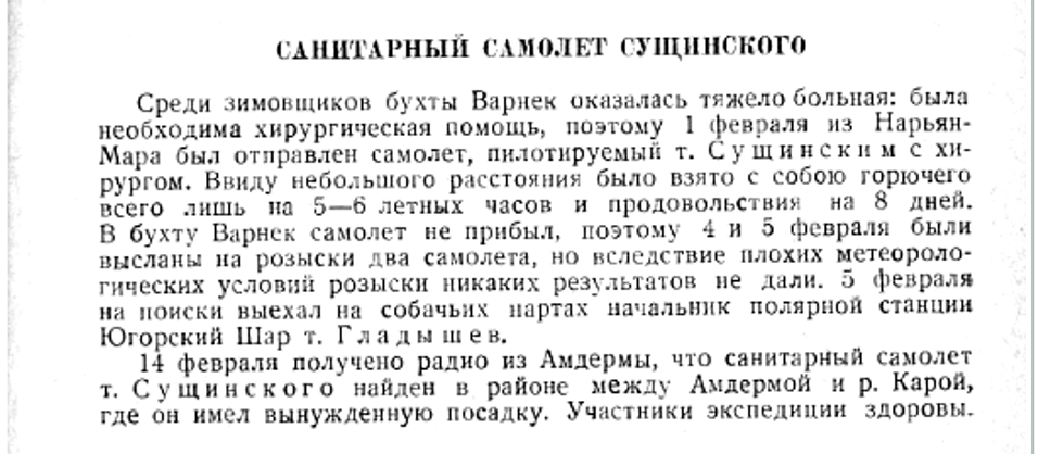 У всех еще в памяти случай, когда самолет "СССР-117" снял больных и детей с затертого льдами с бухте Лаврентия парохода "Ставрополь" обреченного на зимовку во льдах Арктики.