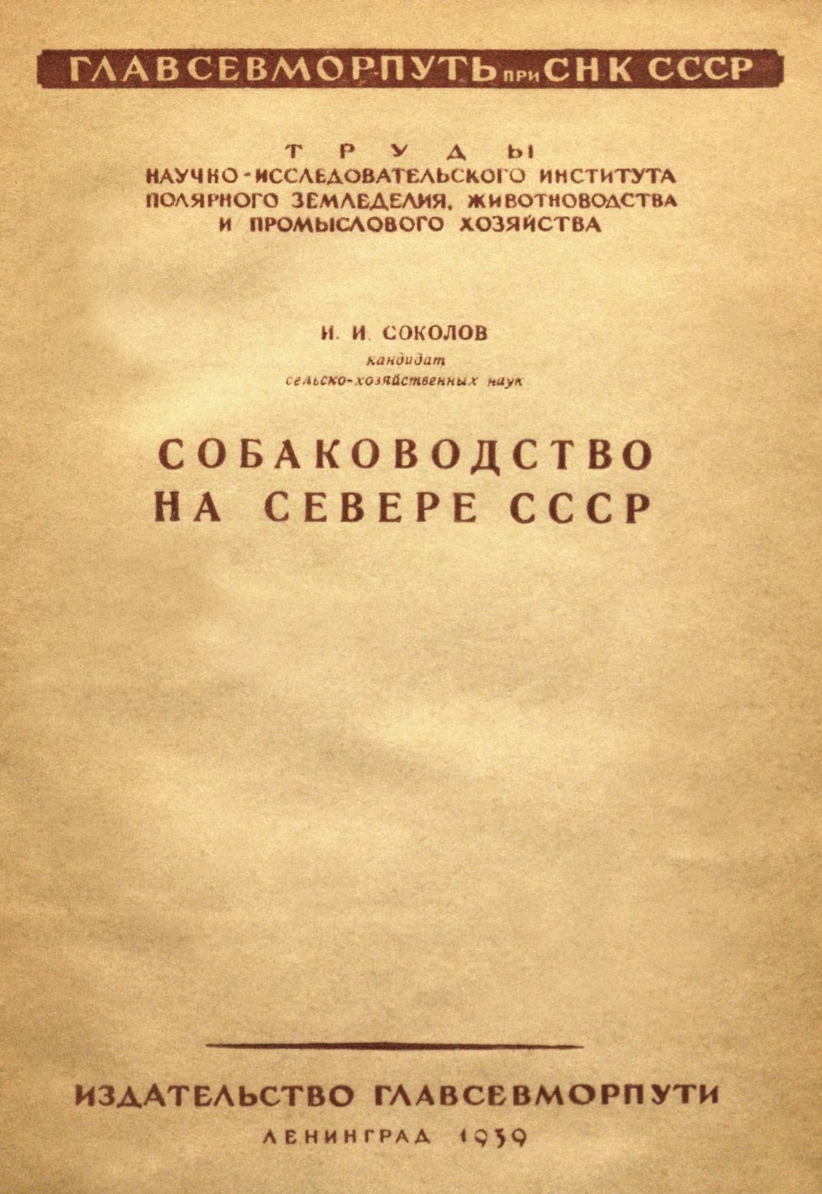 Соколов, И. И. Собаководство на Севере СССР [Текст] / Под ред. проф. Н. А. Смирнова. - Ленинград : Изд-во Главсевморпути, 1939. - 92 с. : ил.; 26 см.