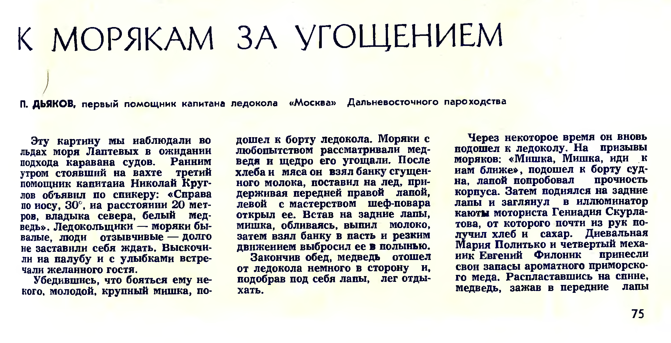 С.Успенский. Белый медведь // журнал «Охота и охотничье хозяйство», № 5, 1966. стр. 14-16