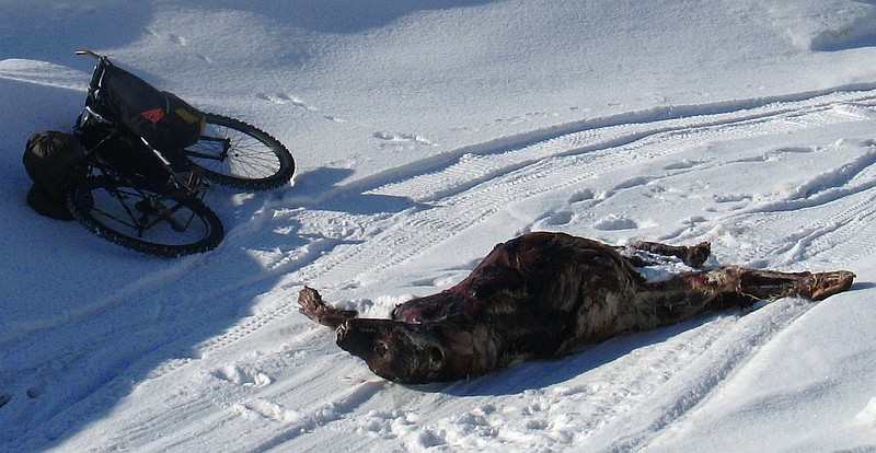 Эта лежала с осени у Янраная, солнце припекло и её оттащили на пару километров.