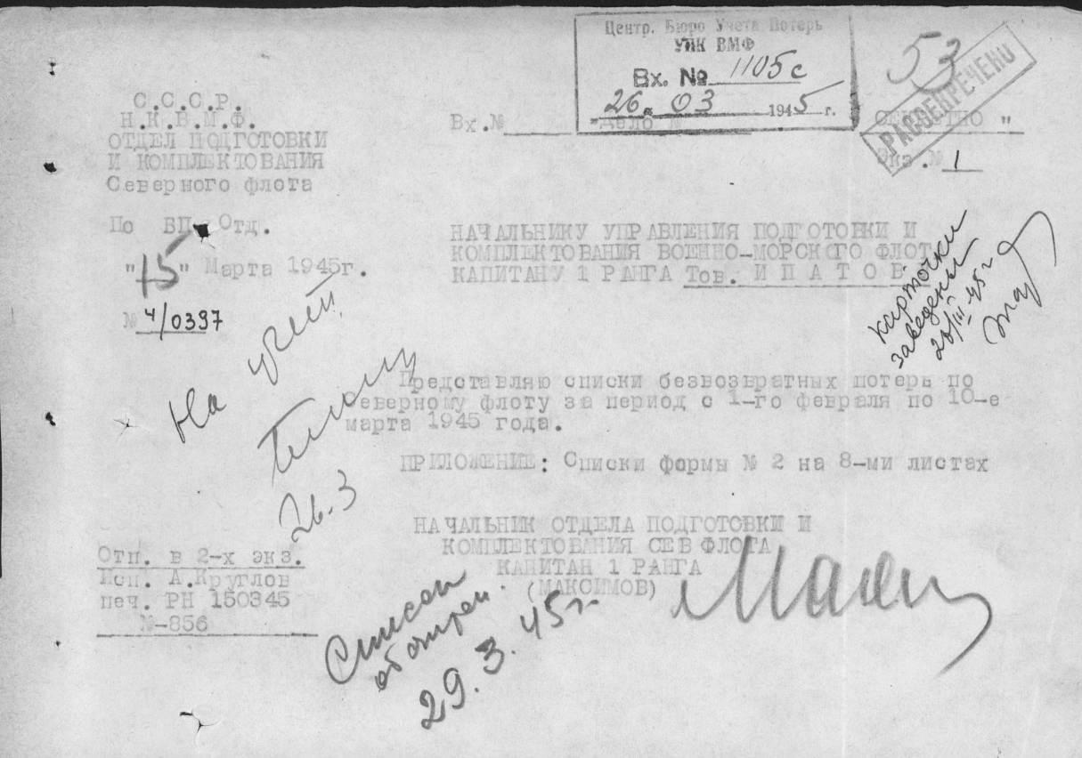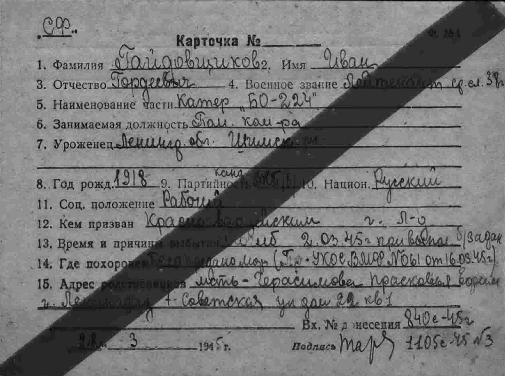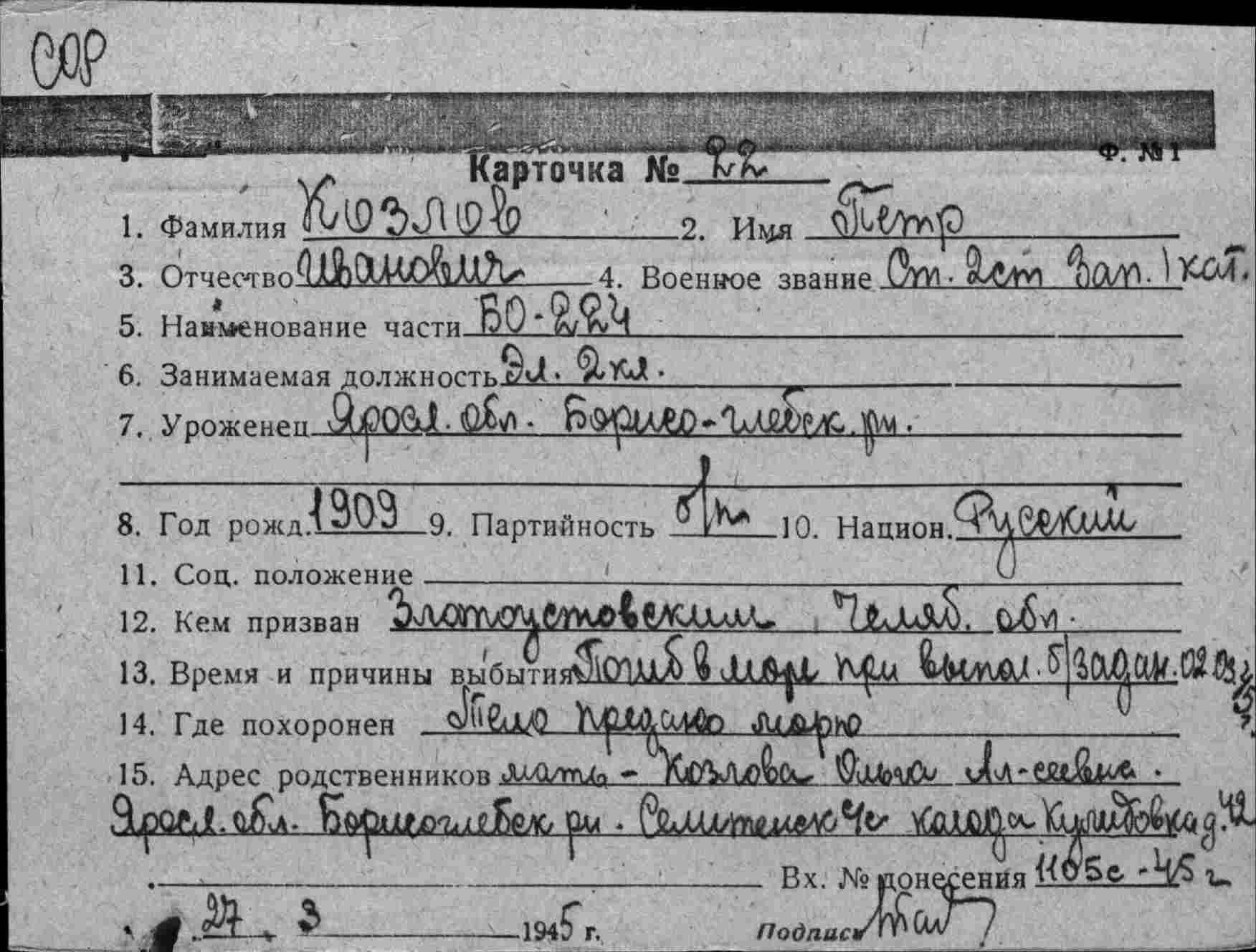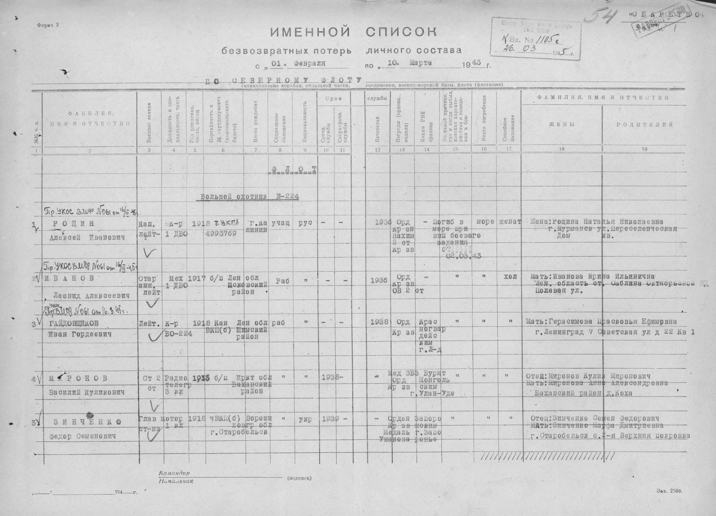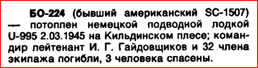 Список экипажа БО-224 и в/сл 1 ДБО погибших 2 марта 1945 года в результате торпедной атаки подводной лодки U-995