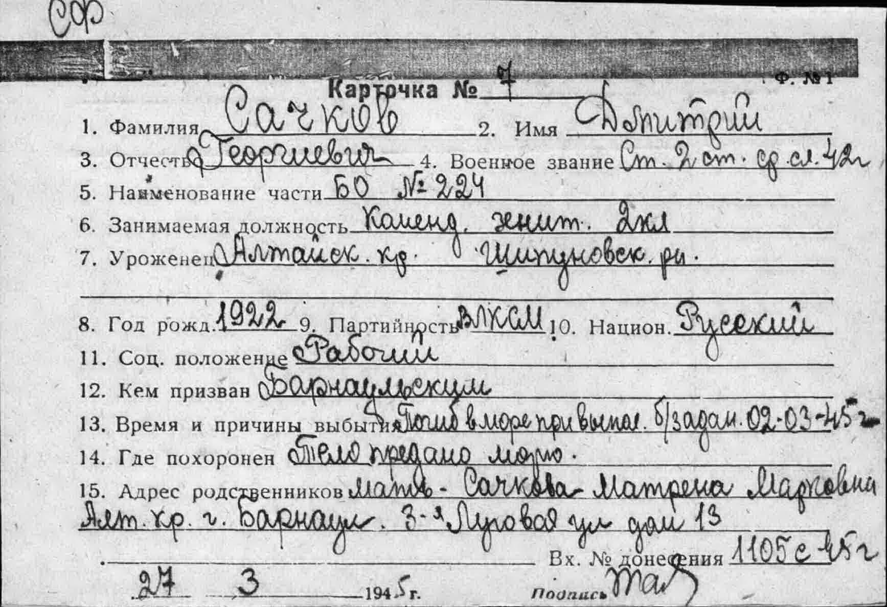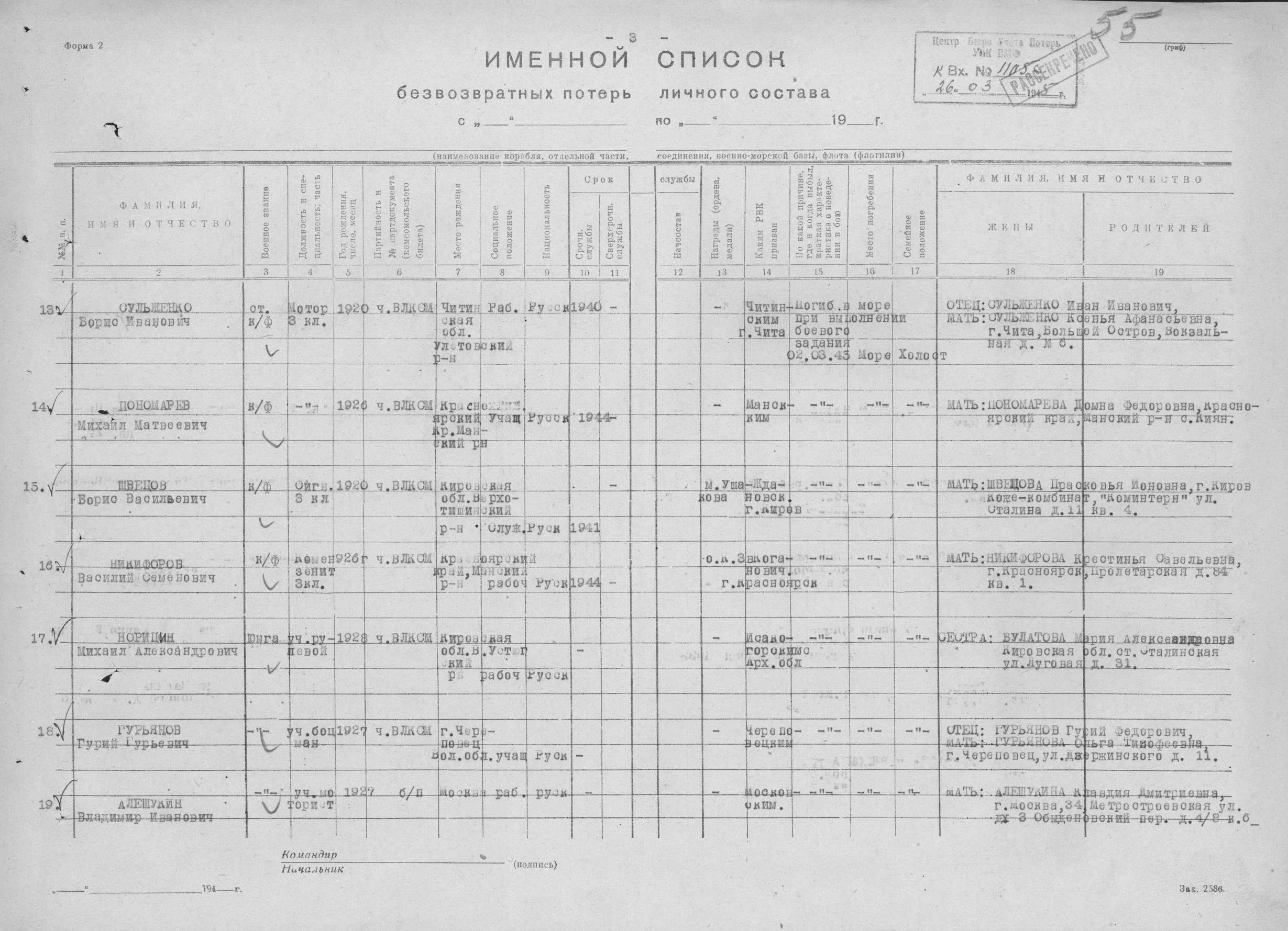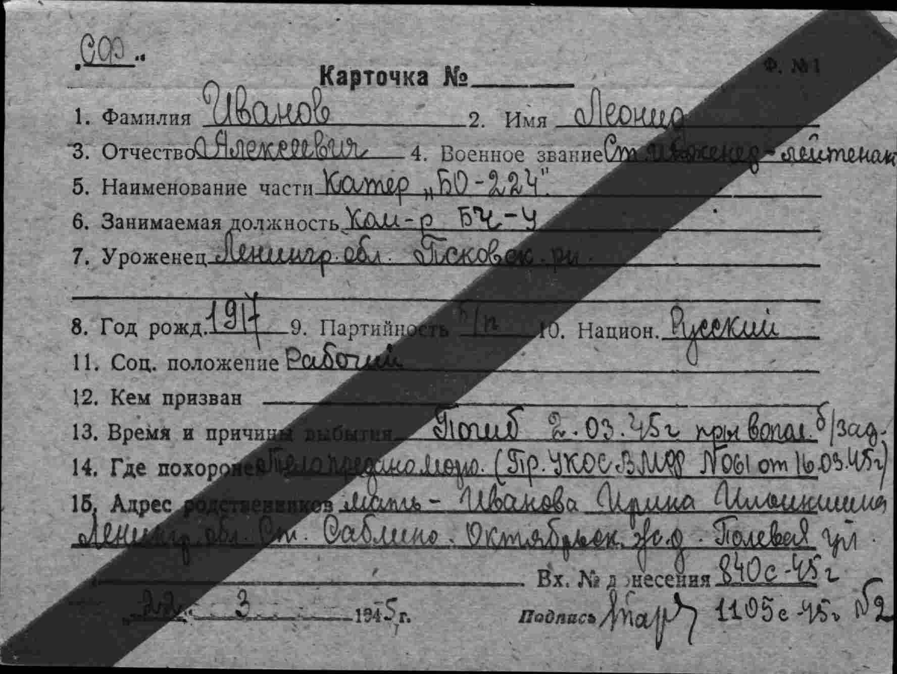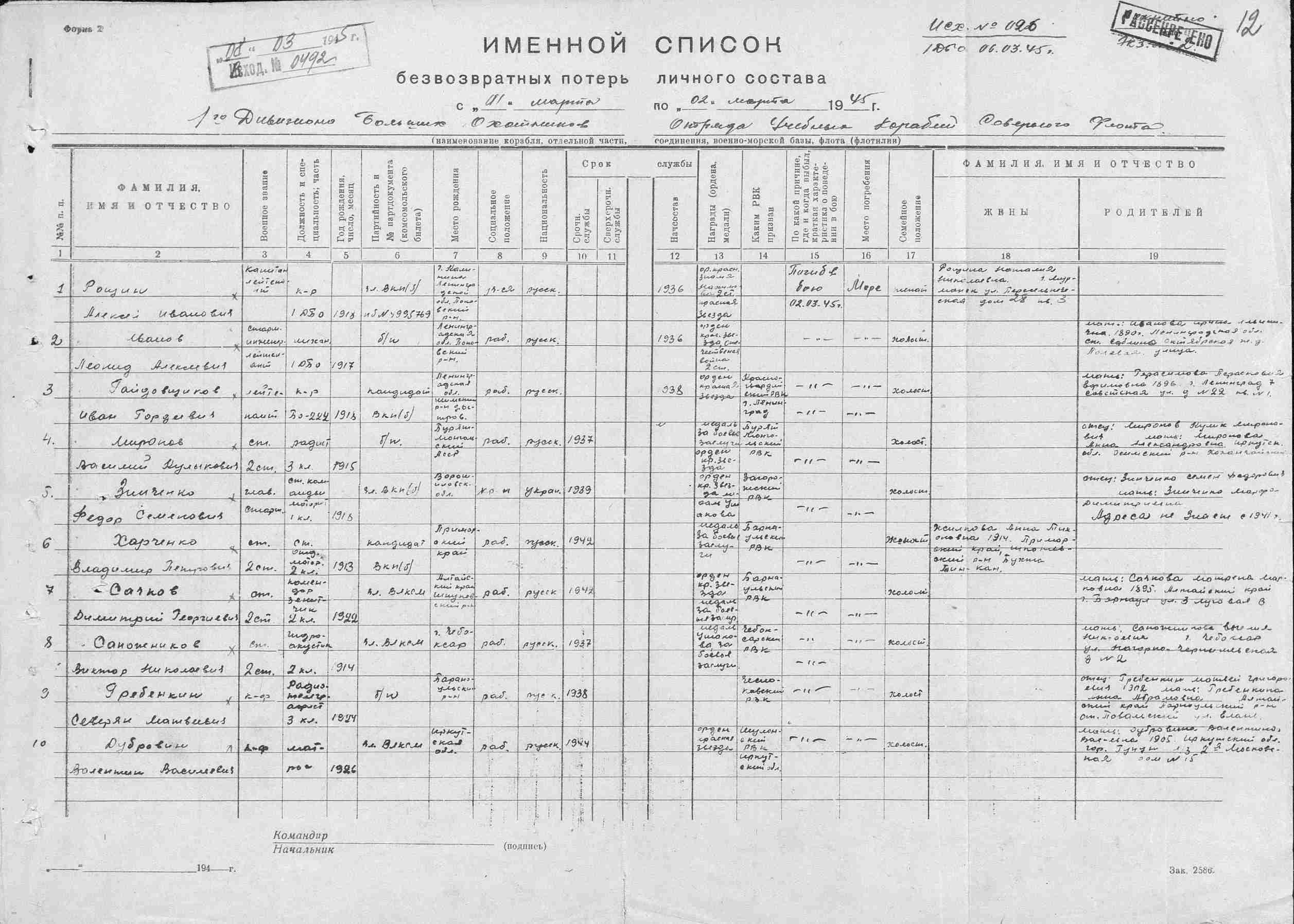Список экипажа БО-224 и в/сл 1 ДБО погибших 2 марта 1945 года в результате торпедной атаки подводной лодки U-995