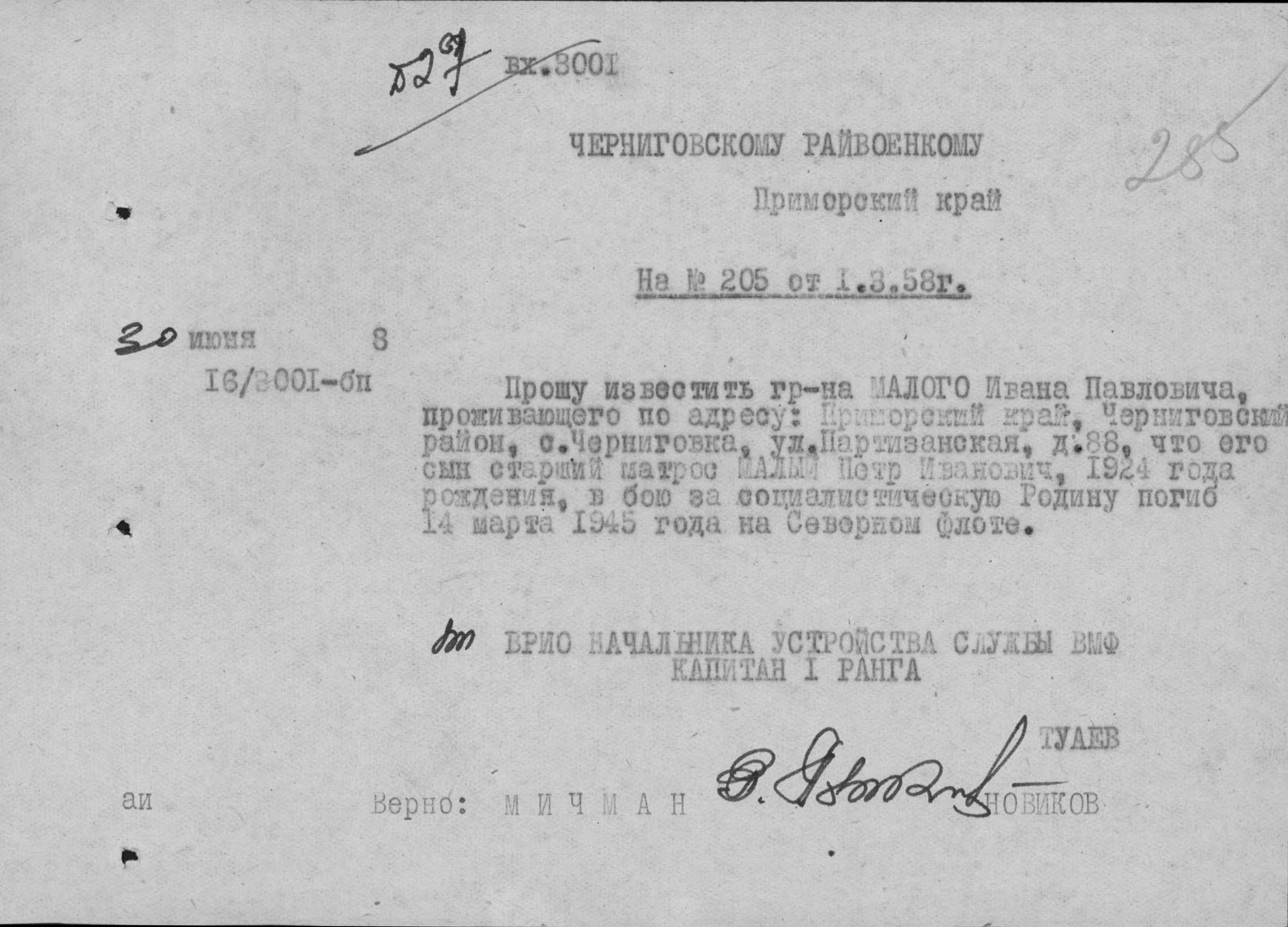 Миронов Василий Куликович,старшина 2 ст,радиотелеграфист 3 к