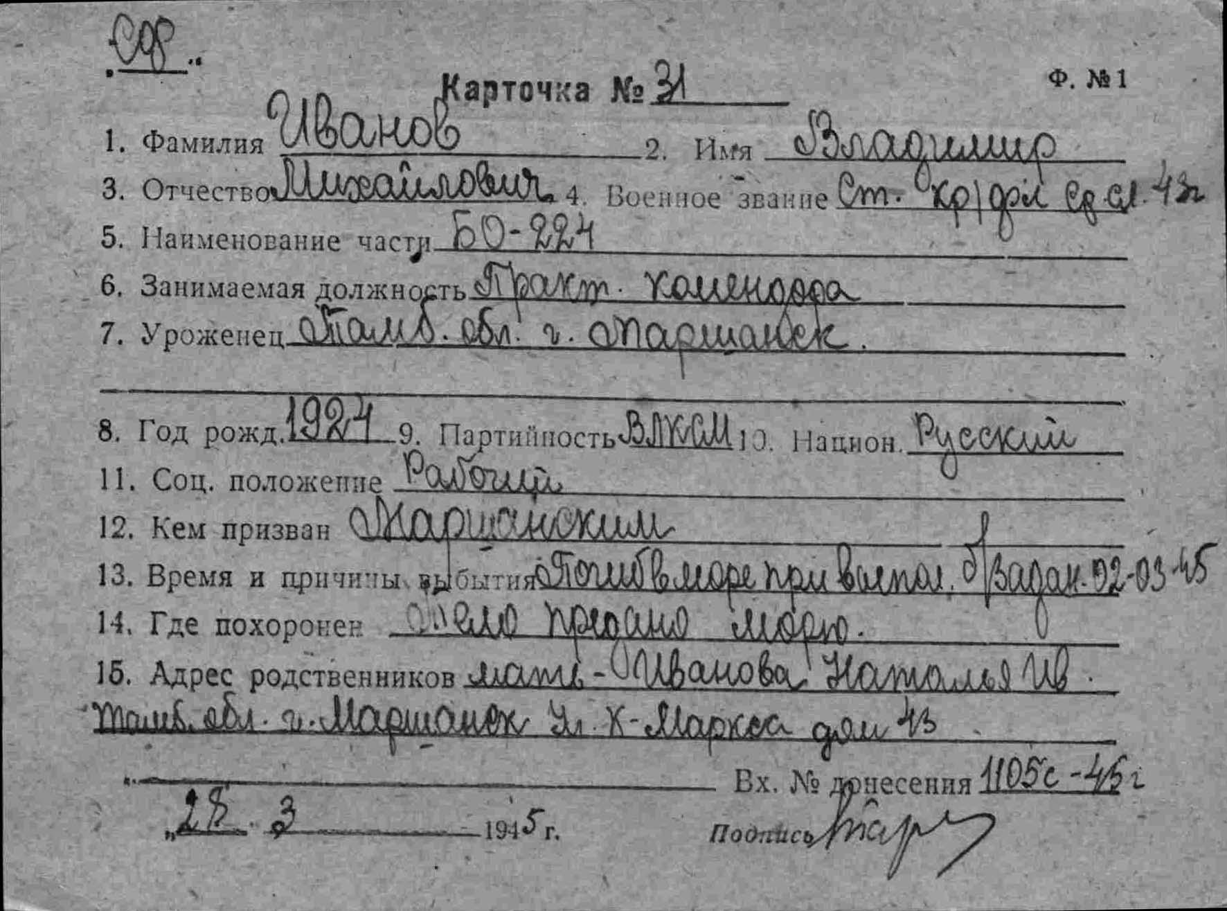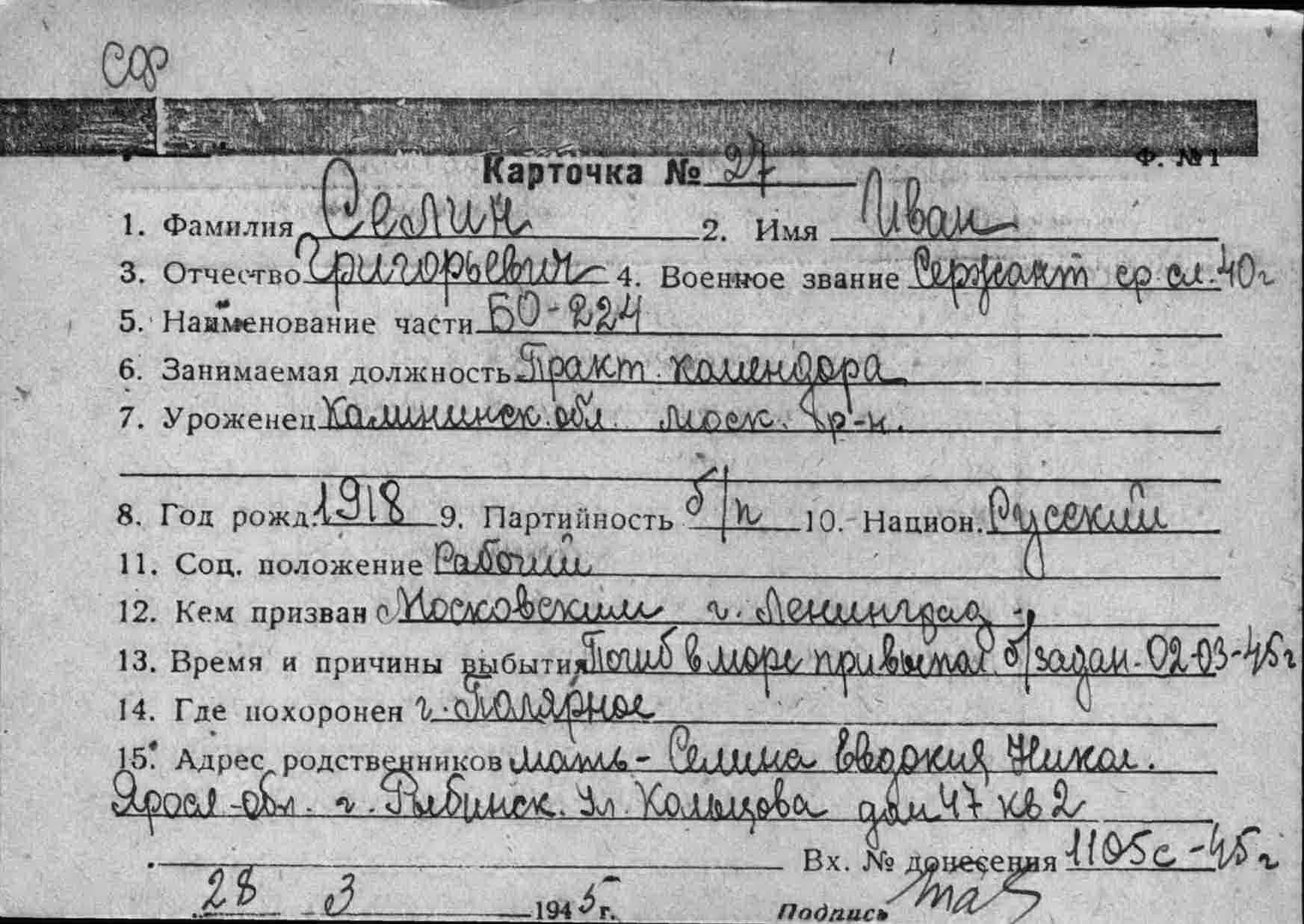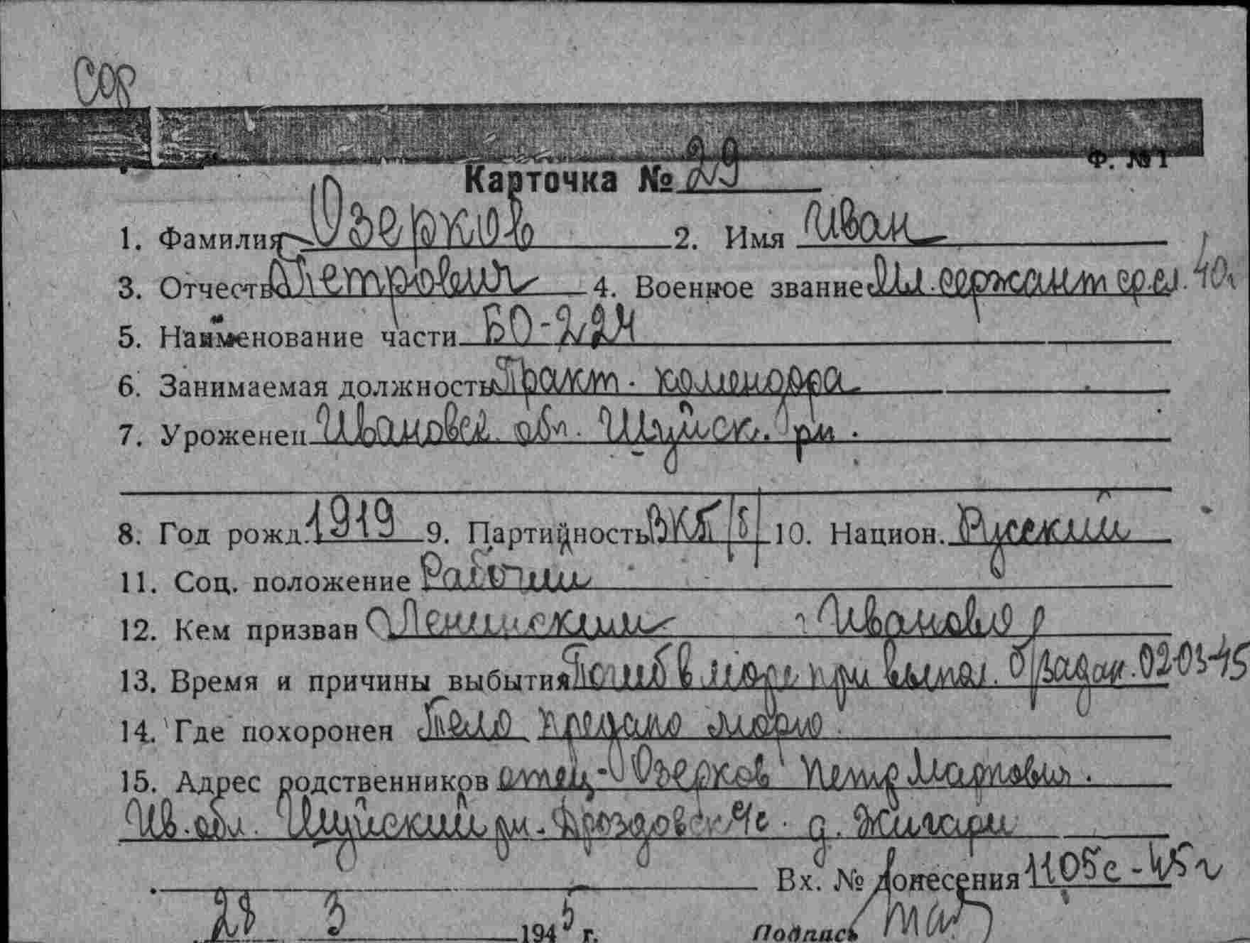 Озерков Иван Петрович,мл.сержант,практ.комендора