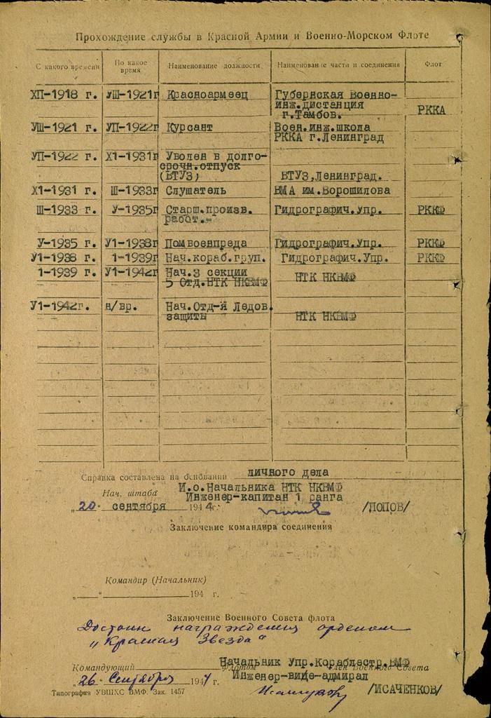 в РККА с 1931 года Место службы: НТК НКВМФ