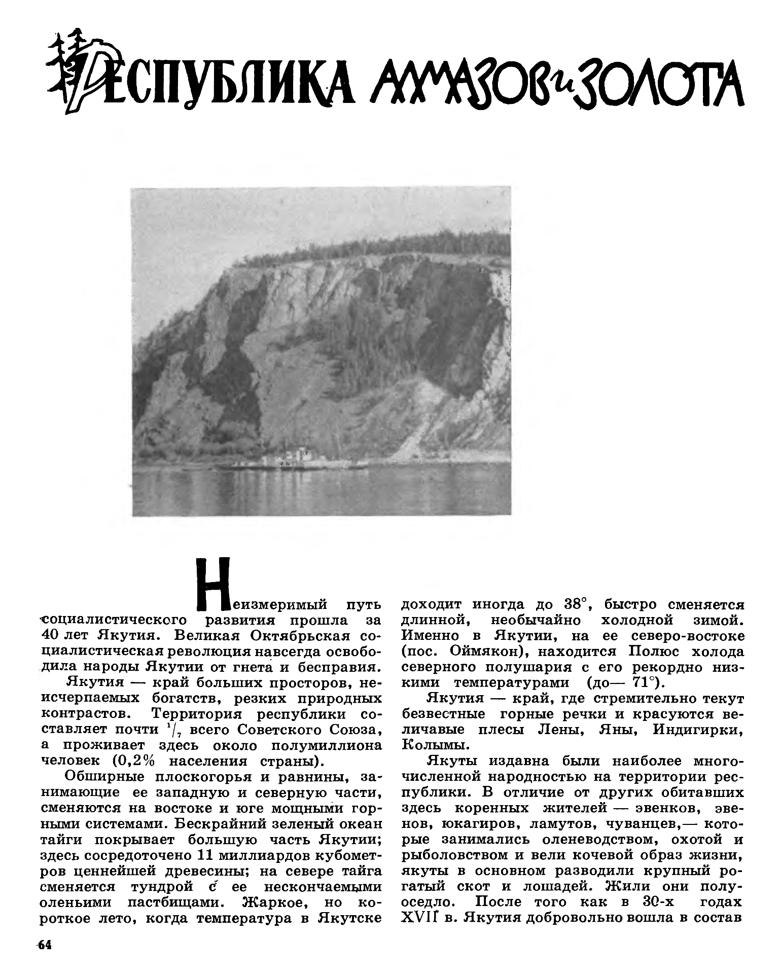 История. Впервые известие о якутах получено было в 1620 г. от мангазейских казаков. В 1627 г. из Енисейска была отправлена партия из 10 казаков с десятником Василием Бугром, достигшая р. Лены в следующем году. Решительные действия начались с 1632 г., когда енисейский сотник Петр Бекетов, с 30 казаками, плывя по Лене до места, где стоит гор. Якутск, покорил по пути якутов, обложил их ясаком и для прочного занятия края заложил Якутский острог. Почти одновременно с основанием Якутска енисейские казаки шли по Лене с ее верховья, а мангазейские пролагали к ней путь с З, спускаясь по р. Вилюю. Еще в 1630 г. отряд мангазейцев, под начальством Васильева, дошел до Лены и покорил вилюйских якутов. Не обошлось без кровавых столкновений между самими русскими из-за права собирания ясака с инородцев. Эти междоусобицы повели к назначению особых воевод и к самостоятельности Якутска. В 1636 г. из Енисейска был отправлен десятник Буза, с 10 казаками, с наказом осмотреть реки, текущие в Сев. Ледовитый океан. Прозимовав в Олекминском остроге, основанном енисейскими же казаками в 1635 г. против устья р. Олекмы и впоследствии перенесенного на место, где теперь стоит г. Олекминск, Буза, с присоединившимися к нему промышленниками, двинулся в 1637 г. вниз по р. Лене и через 2 месяца достиг западного устья Лены, откуда, идя по морю на запад, дошел до устья р. Оленека. В 1638 г. основан был Верхоянск в виде зимовья. В Якутске тогда числилось до 200 жит. В том же году атаман Максим Перфильев поднимался по р. Витиму и, перезимовав, достиг устья р. Ципы. Неутомимый Буза в том же году снова спустился по р. Лене и, выйдя в океан ее восточным устьем, дошел до устья р. Яны; здесь он зазимовал, а в следующем году опять пустился по морю на З и дошел до устья р. Чендоны. В том же 1638 г. казак Постник дошел до р. Индигирки и основал здесь зимовье, спутники же его в 1639 г. на двух выстроенных ими кочах спустились по р. в Северный Ледовитый океан и добрались до устья р. Алазеи. В 1644 г. казак Михайло Стадухин открыл р. Колыму, основал Нижне-Колымское зимовье, доставил первые сведения о чукчах и заложил Средне-Колымский острожек. В 1645 г. произошло восстание юкагир. В 1648 г. казак Дежнев с товарищами Анкудимовым и Алексеевым морем добрались до р. Анадыря. В 1650 р. казак Мотора прошел сухим путем от р. Анюя до устья р. Анадыря, а Стадухин достиг р. Пенжены и открыл ее устье. В 1682 г., при воеводе Приклонском, якуты сделали последнюю попытку к восстанию, к ним присоединились раскольники и даже некоторые казаки. Восстание кончилось полным их разгромом. Остатки разбитых якутов бежали за р. Яну; воевода отправил за ними отряд из 70 человек, приказывая им истреблять бежавших и обложить ясаком каменных ламутов. В котловине Эллер-Собит ламуты подкараулили этот отряд и истребили его; только трое из отряда спаслись бегством. В 1702 г. якутские казаки были организованы в полк, численностью в 1500 чел., под командой казачьего головы, с подчинением якутским воеводам; в 1767 г. полк переименован в команду и подчинен иркутскому обер-коменданту. В 1730 г. известный сибирский историк Миллер занимался в Якутске разработкой местных архивов. В 1735 г. в Якутске был Беринг, отправлявшийся в свою ученую экспедицию. В том же году на Лене у Якутска были построены 2 шлюпки — «Якутск» и «Иркутск», на которых отправились для описи берегов и Сев. Лед. океана Прончищев и Ласениус
