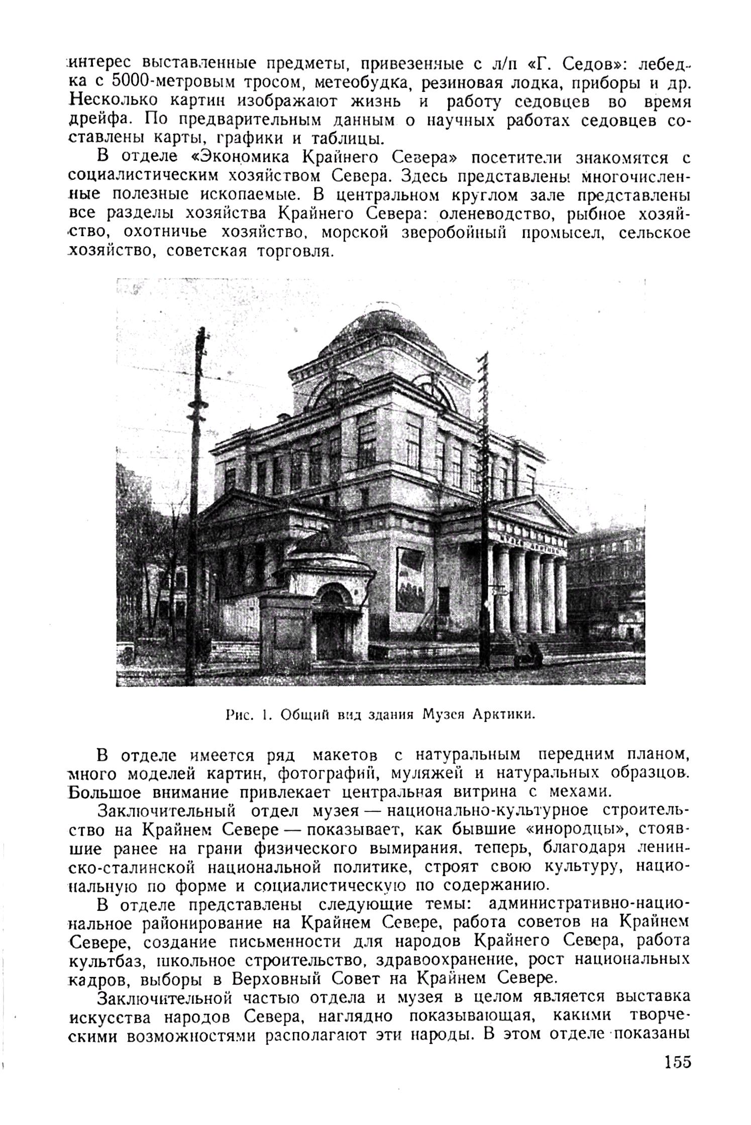 С 1923 г., когда началось систематическое изучение Арктики, в Ленинграде, Москве и Архангельске были организованы выставки многочисленных научных материалов, собранных в экспедициях.