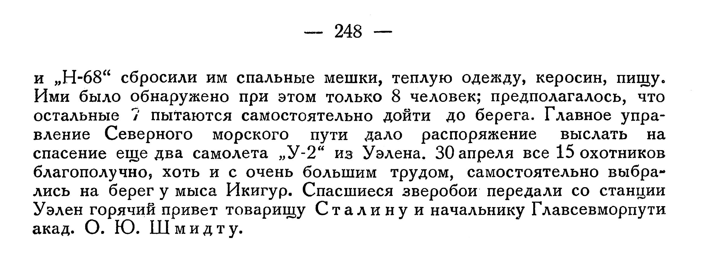 МЫС ШАЛАУРОВА. В январе сгорела полярная станция. Огнем уничтожена большая часть аппаратуры станции и имущества зимовщиков. Радиостанция уцелела; в ней временно размещены зимовщики.