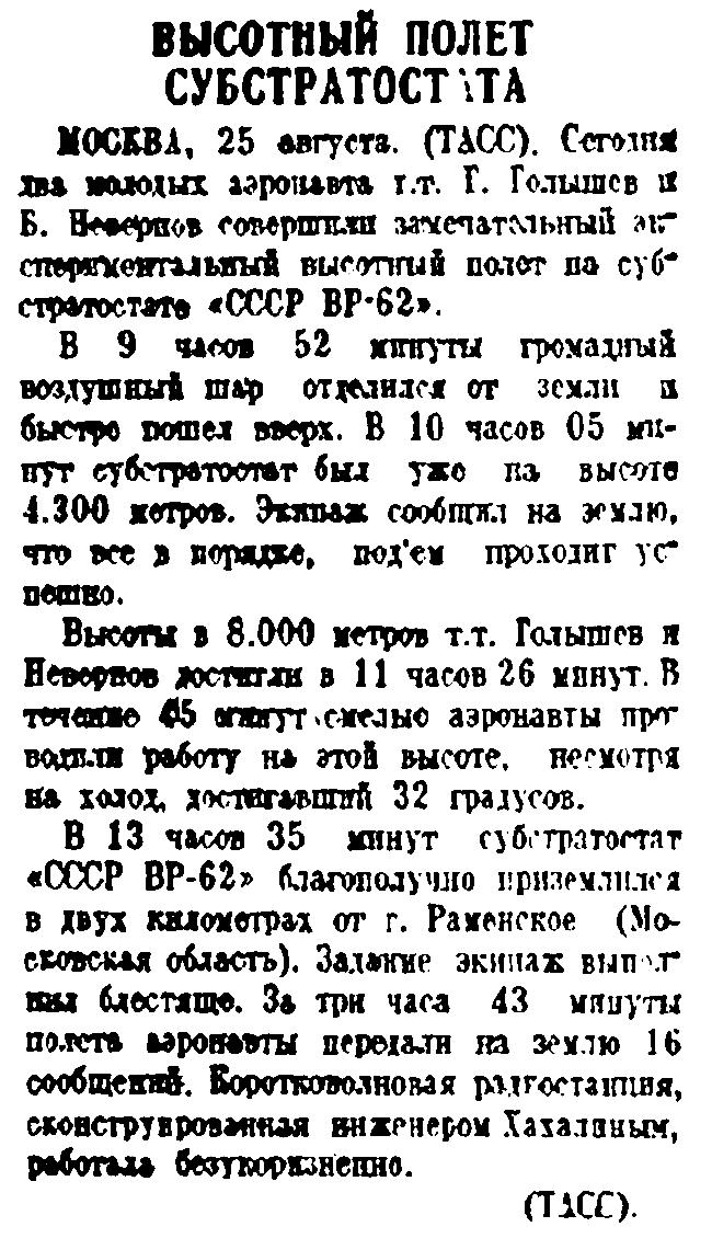 НЕКОТОРЫЕ ПОДРОБНОСТИ ПОСАДКИ АЭРОСТАТА "СССР ВР-31" В НИЖНЕМ ЛОМОВЕ
