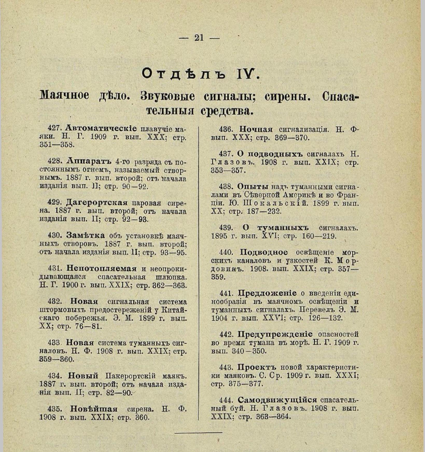 657. Роспись книг, брошюр, отдельных статей, атласов, карт. Из собрания книг XVIII и XIX столетий Н. Г. Мартынова по морскому делу и вспомогательным к нему наукам. 1911. вып. XXXIII; прилож. стр. 1—42. 1913. вып. XXXVII; стр. 1—22.