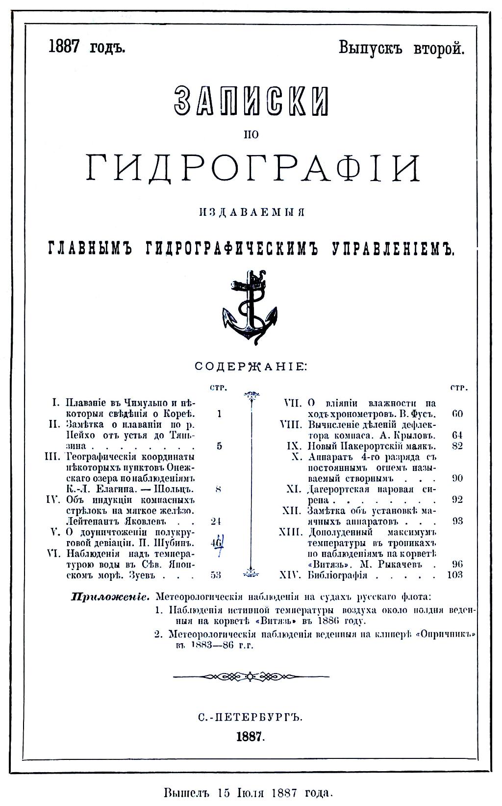 Записки по гидрографии. Вып. 2. - СПб., 1887