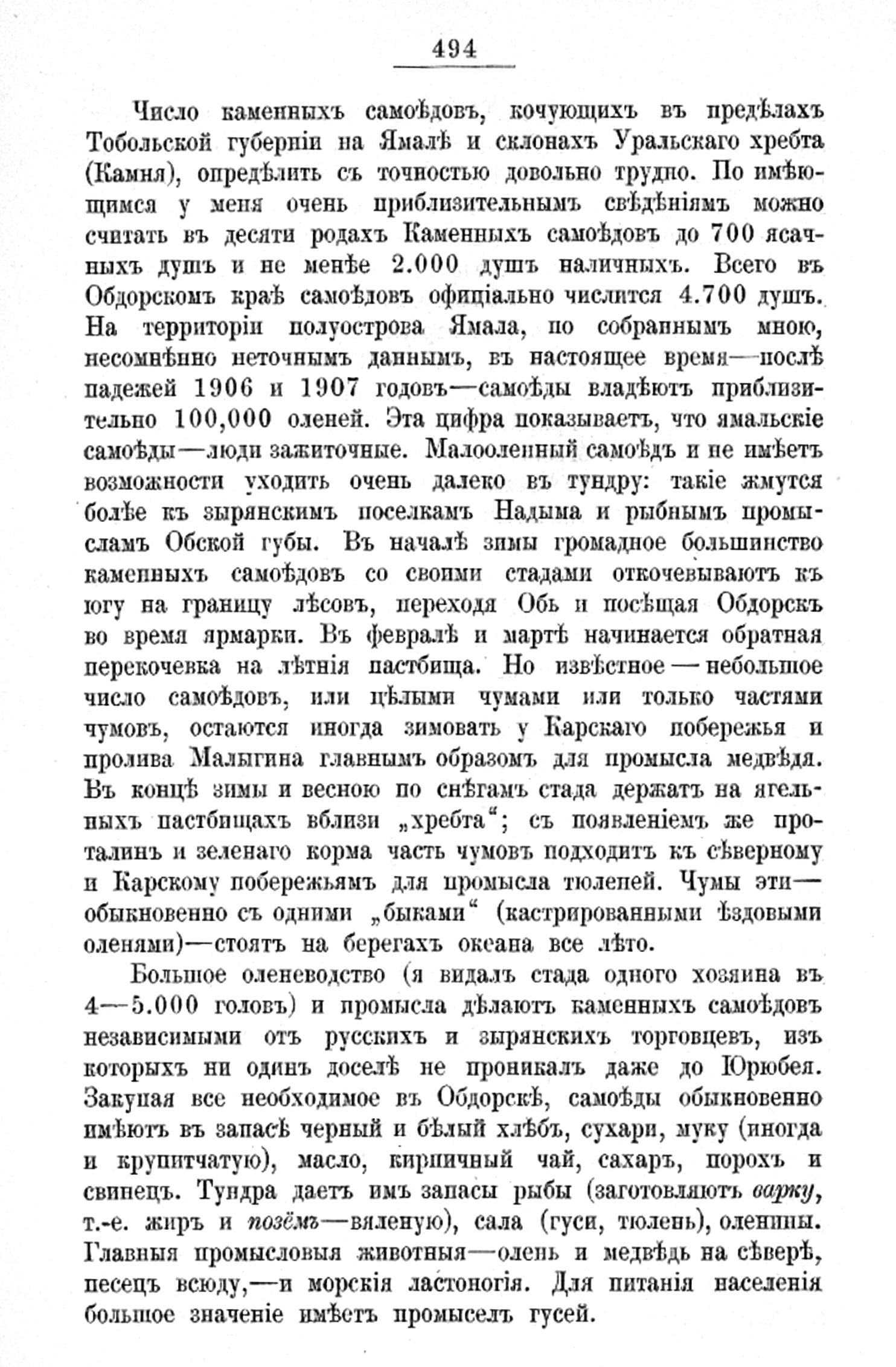 охотничьих промыслах самоедов и проживающих в низвьях Оби русских. Их основными