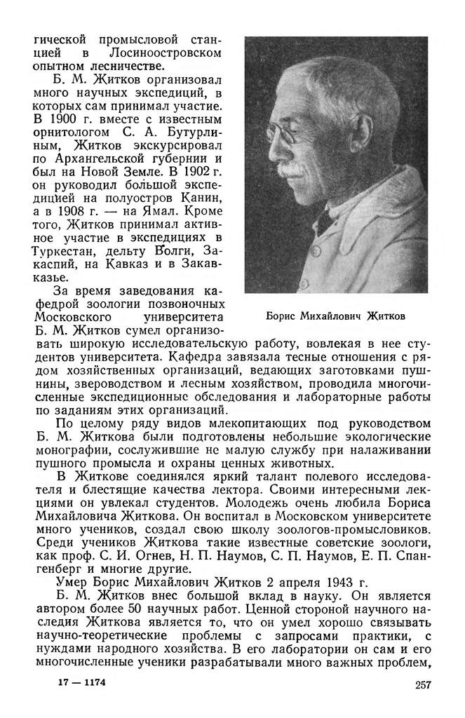 Бориса Михайловича Житкова (1872—1943), известного отечественного зоолога, одного