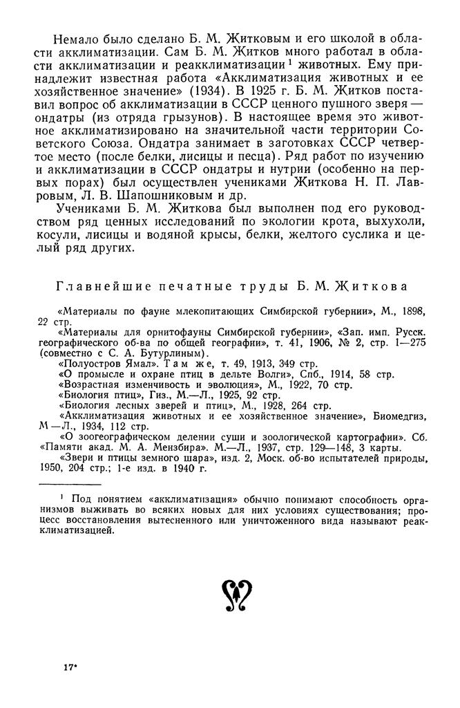 зачинателей природоохранного движения в России. Наконец, его имя вот уже более 70 лет носит широко известный и у нас в стране, и за рубежом Всероссийский научно-