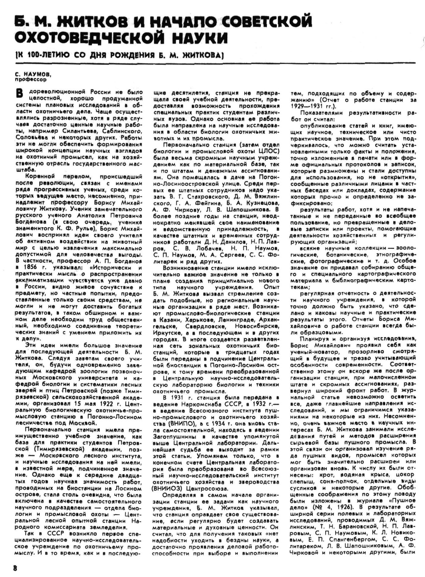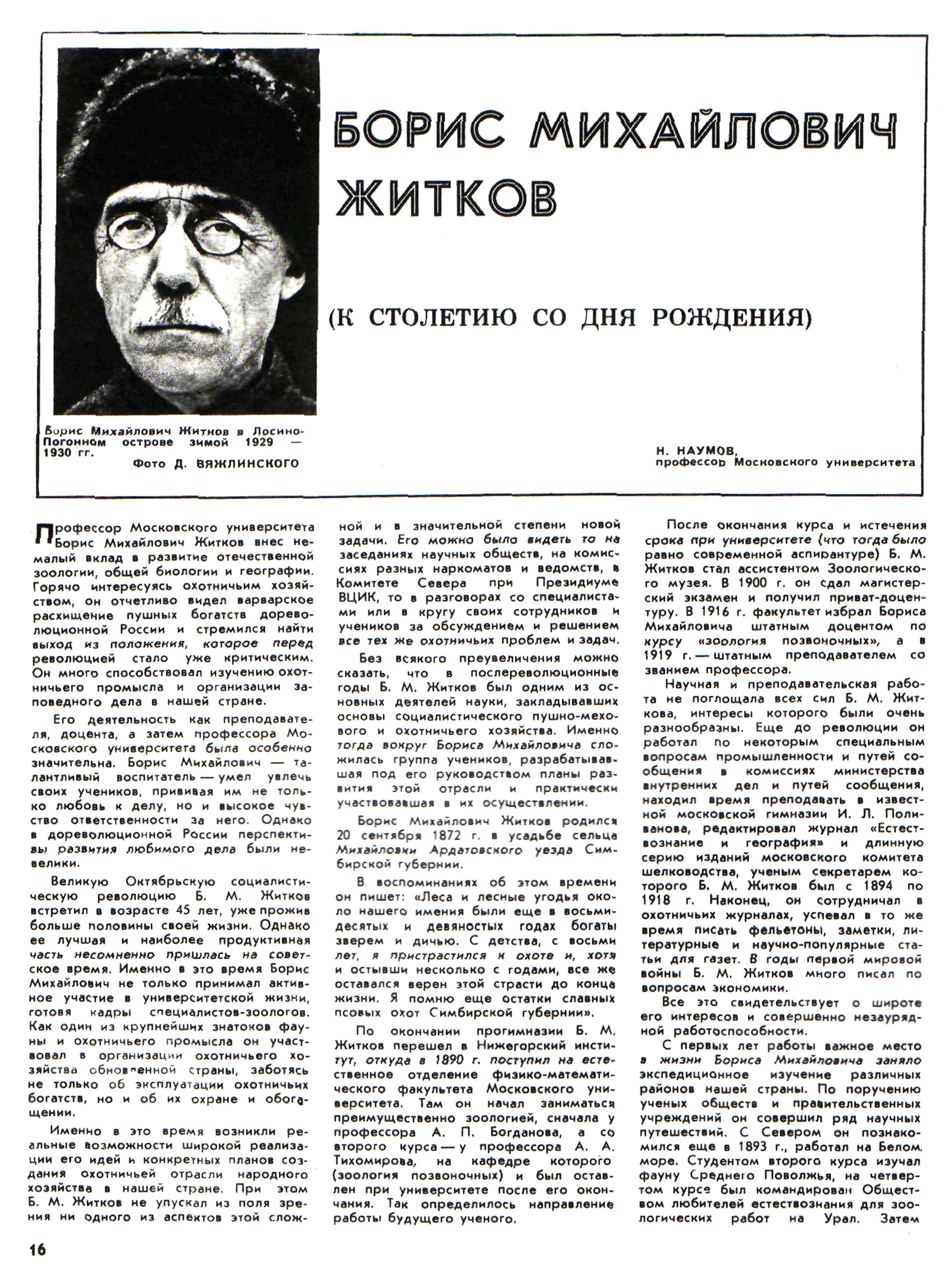 Вехов Н. В. Борис Михайлович Житков и его увлечения Севером // Охота и охотничье хозяйство. - 2014. - № 1. - С. 14-17