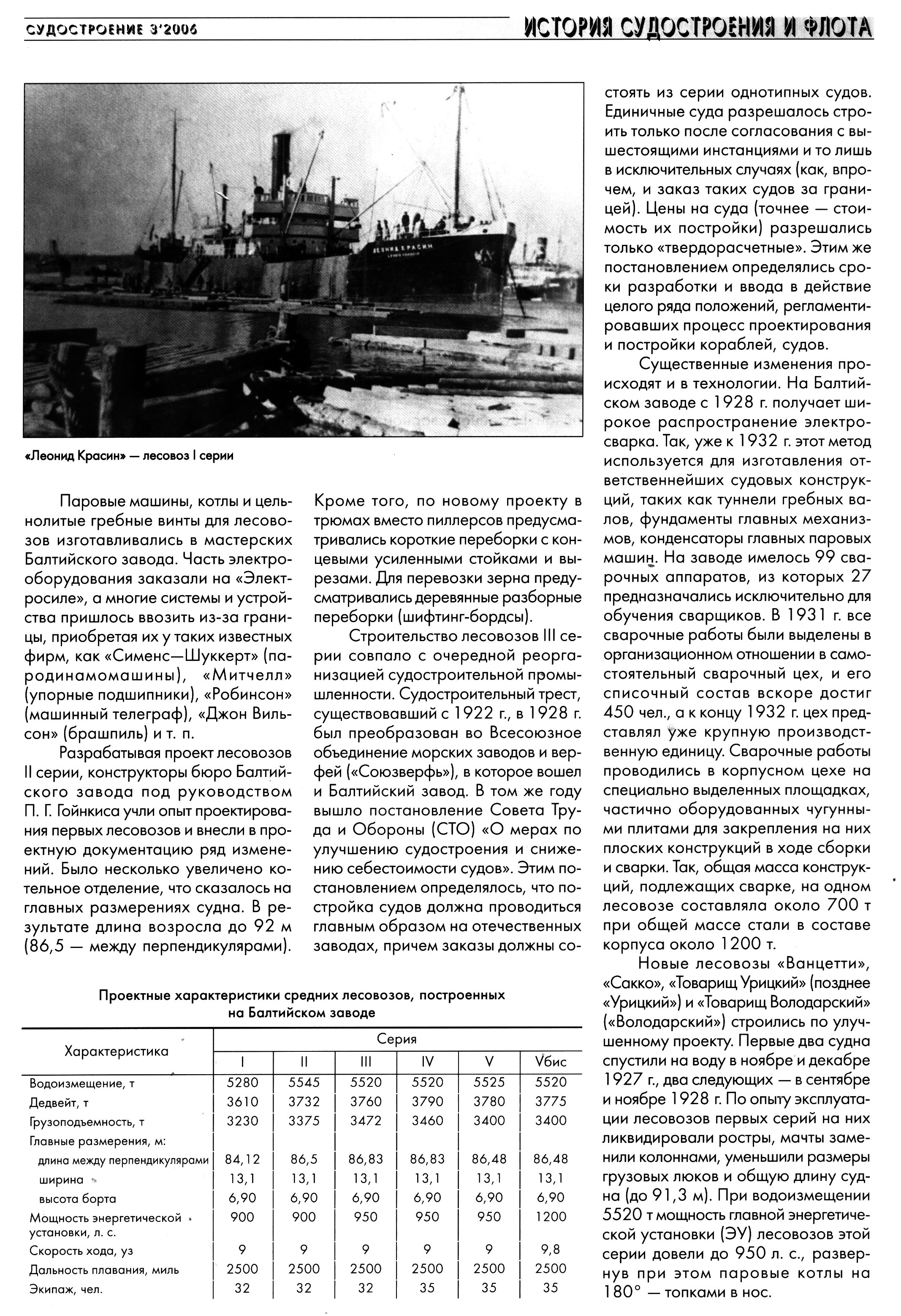 ЧАЙКА СВ пишет:В журнале "Судостроение", в статье Н.Н. Афонина, посвященной первым советским лесовозам, имеется фото парохода "Леонид Красин" с указанием его принадлежности к лесовозам I-ой серии. Видимо, подразумевался п/х "Товарищ Красин" (1927 г.п.).