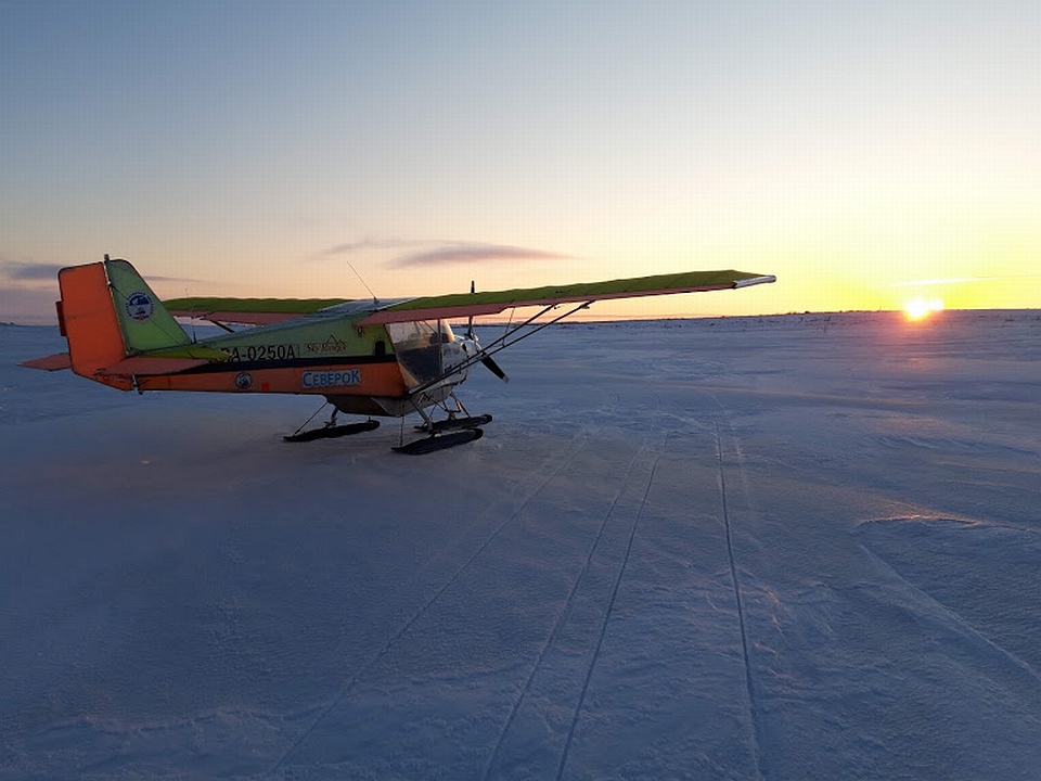 В 11 21 в северной части острова и самом сердце Вайгача впервые сел сверхлегкий самолет Малой Полярной авиации!