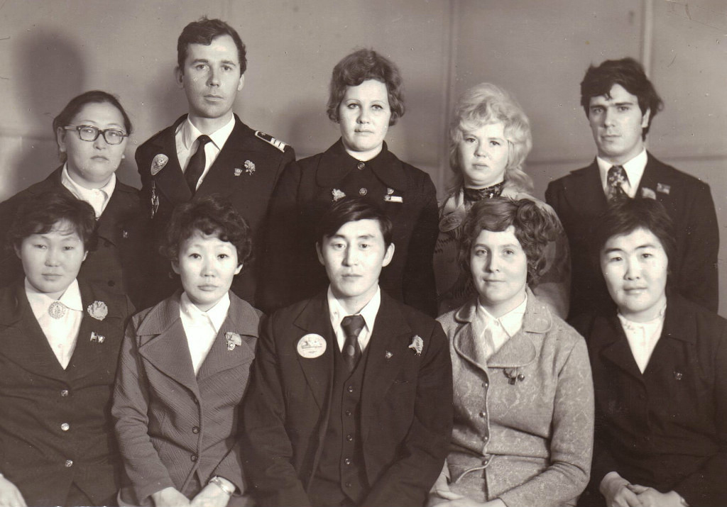 1974 г. Состав бюро РК ВЛКСМ Аллайховского района, (верхний ряд). Владимир Хаустович - АТБ ЧОАЭ, Любовь Ермакова - Радиобюро ЧОАЭ. Из архива Маргариты Ахновской, "Одноклассники"
