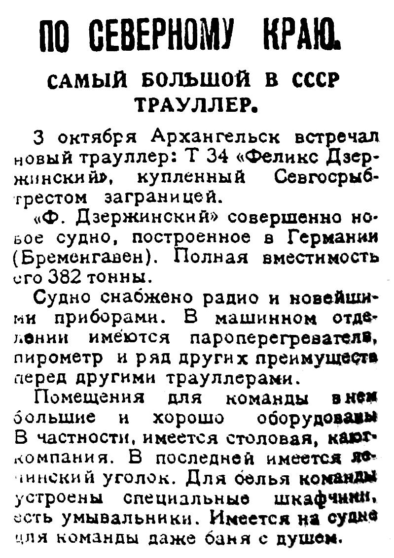 Красный Север, 1927, №231 траулер Т-34 Ф.Дзержинский.jpg