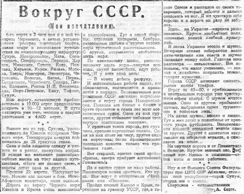 Посетив нашу редакцию, пешеход Сенин сообщил целый ряд интересных подробностей о своем путешествии.