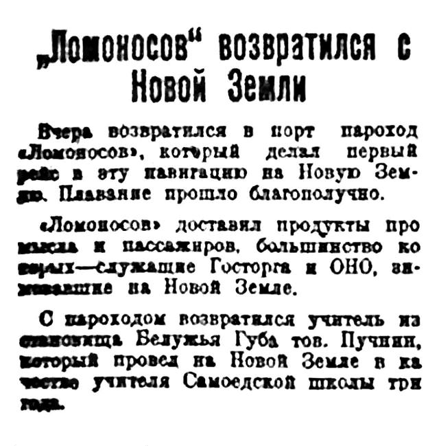 Правда Севера, № 64, 10 августа 1929 г.В НАШЕМ ПОРТУ