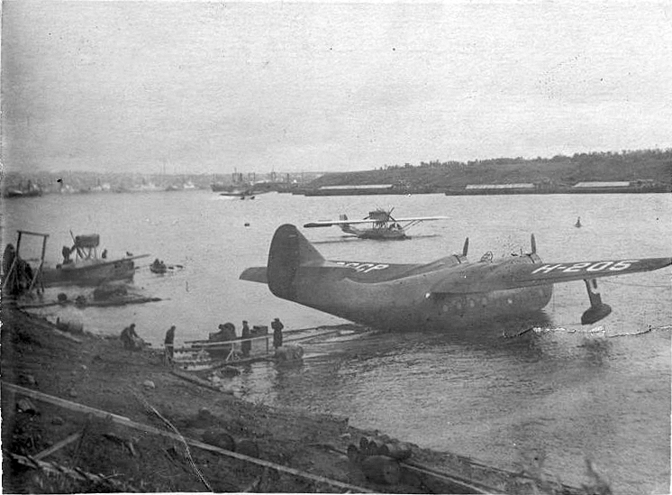Подписано: Гидропорт на Игарской протоке. На первом плане американский самолет «Дуглас».
