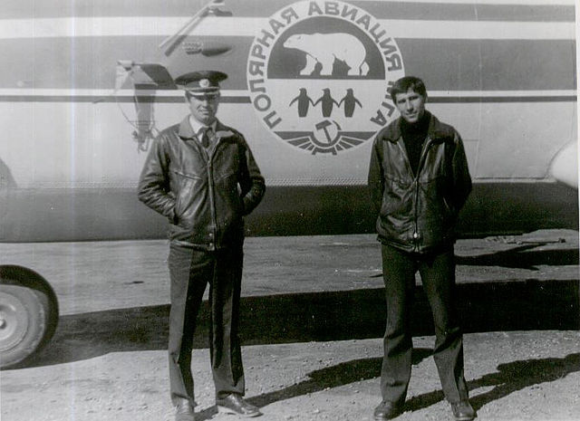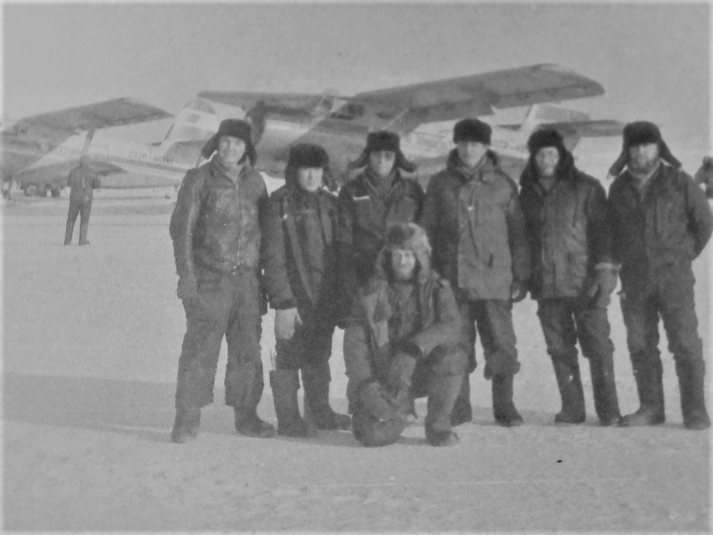 Вадим Черемонов, Николай Кириллов, Виктор Васьков, Вениамин Чикачев, Александр Едаменко. Остров Жохова, середина 80-х годов. На заднем плане Ан-2 СССР-40528, чуть дальше СССР-40861.
