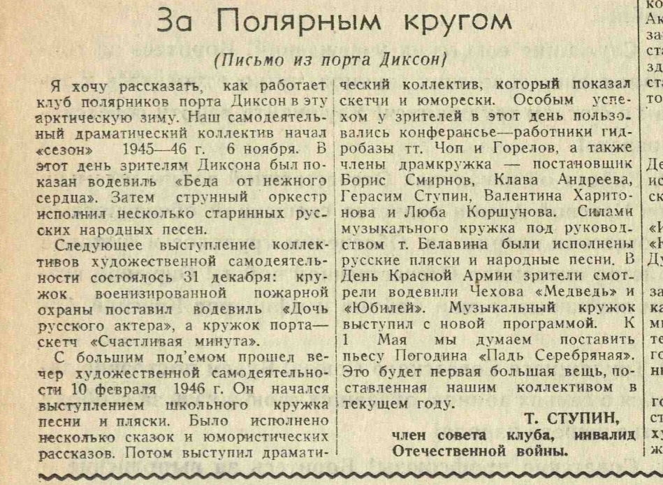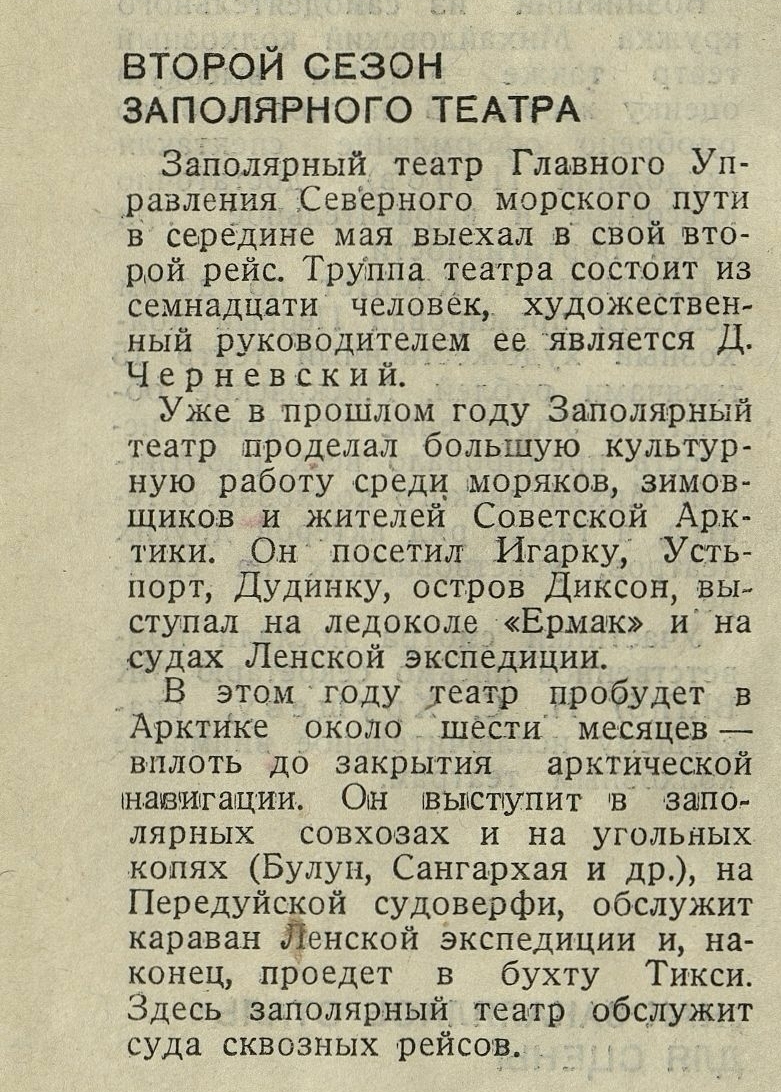 Театр прочно вошел в быт Арктики и Заполярья. В 1937 году