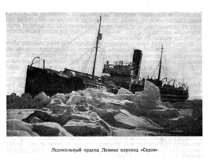 По радио с мостика передают сообщение: “Сейчас “Георгия Седова” ведет Герой Советского Союза К. С. Бадигин”.