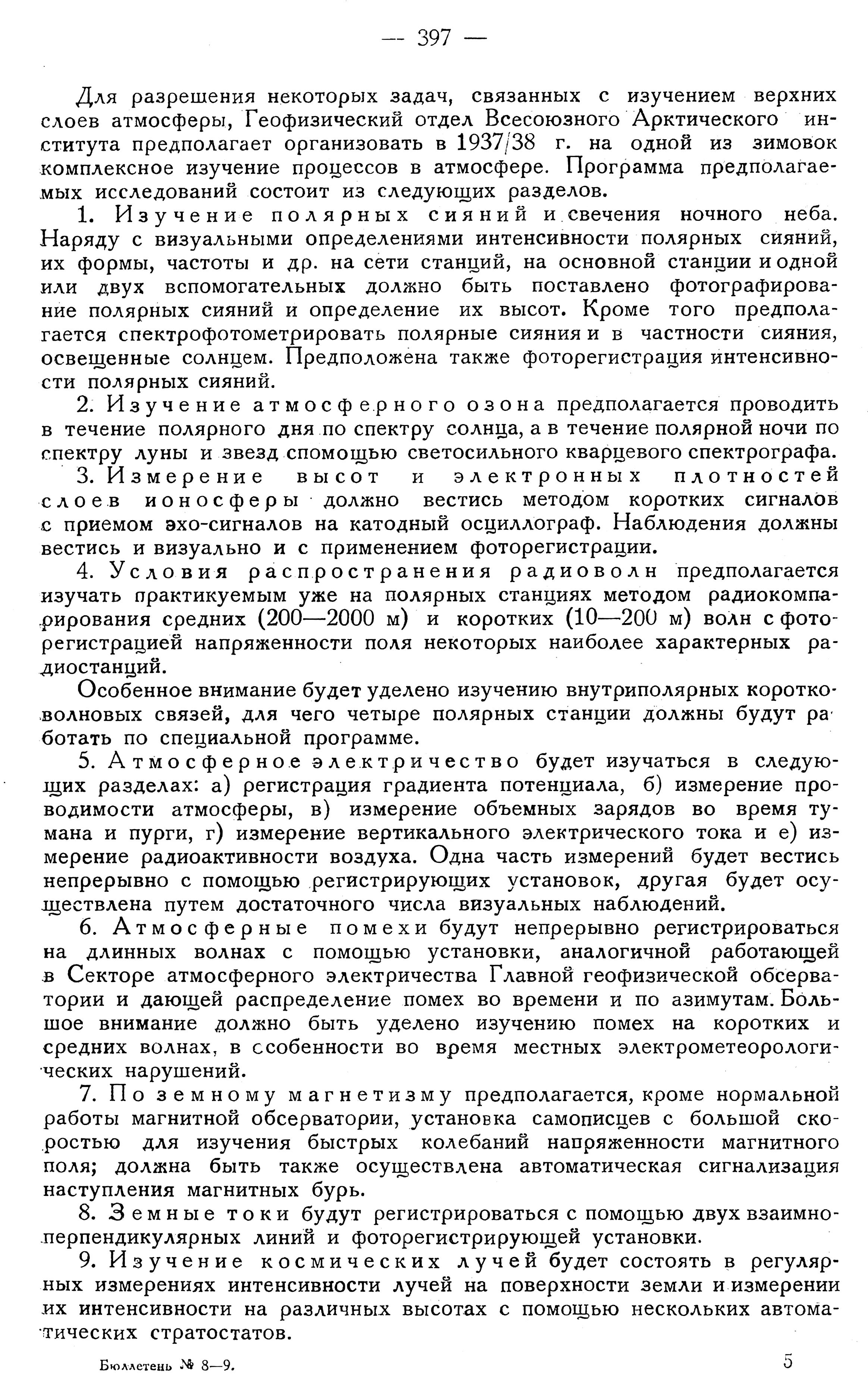 Для разрешения некоторых задач, связанных с изучением верхних слоев атмосферы, Геофизический отдел Всесоюзного Арктического института предполагает организовать в 1937/38 г. на одной из зимовок комплексное изучение процессов в атмосфере. Программа предполагаемых исследований состоит из следующих разделов.