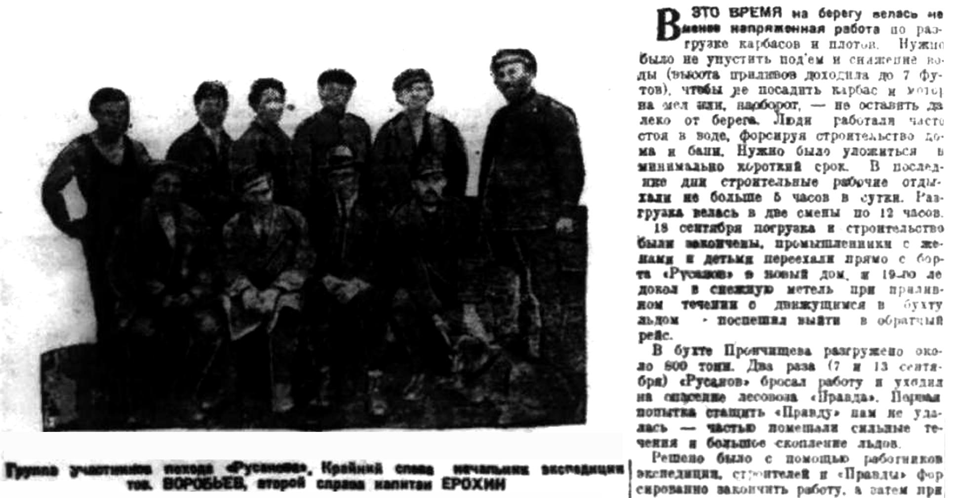Статья нач. Восточно-Таймырской экспедиции т. Воробьева.
