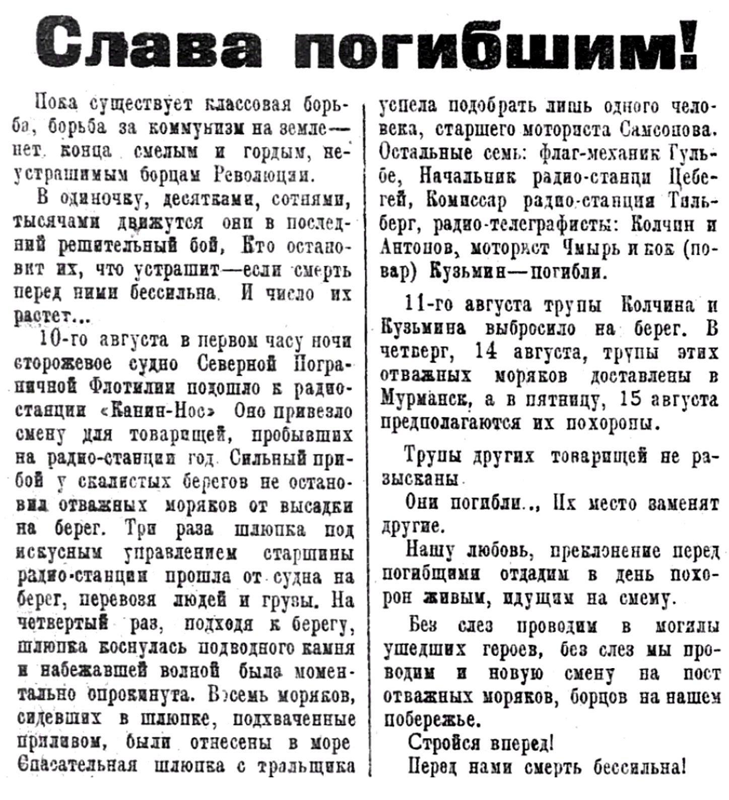 В 1891 году, когда возрос экспорт лесных и промысловых богатств из Печорского речного бассейна морским путем, когда появившиеся мощные суда с железным корпусом стали проникать в недоступные ранее районы Арктического бассейна, Гидрографический департа¬мент вышел в Морское министерство с предложением построить на Канином Носе световой маяк, так как отсутствие маячного огня в таком опасном месте является "главнейшей и единственной причиной, затрудняющей плавание в Печорскую губу не только иностранных судов, но и русских". Однако предложение не было принято, ответ был краток: "нет средств, к тому же для ограждения огнями есть места и поважнее".