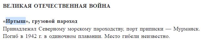 НА ПОИСКИ ПАРОХОДА «ИРТЫШ»