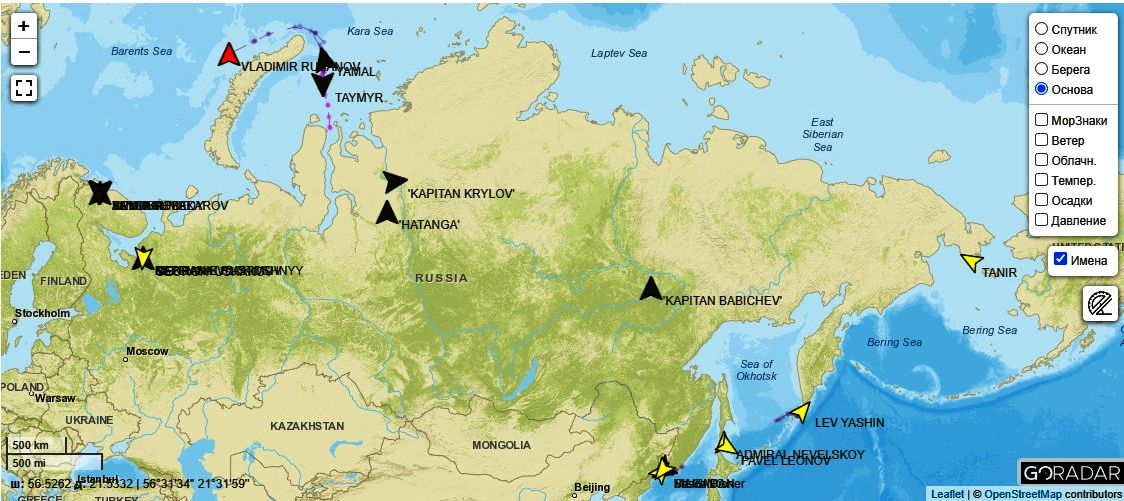 Обновляемая карта https://goradar.ru/vessels_map_283