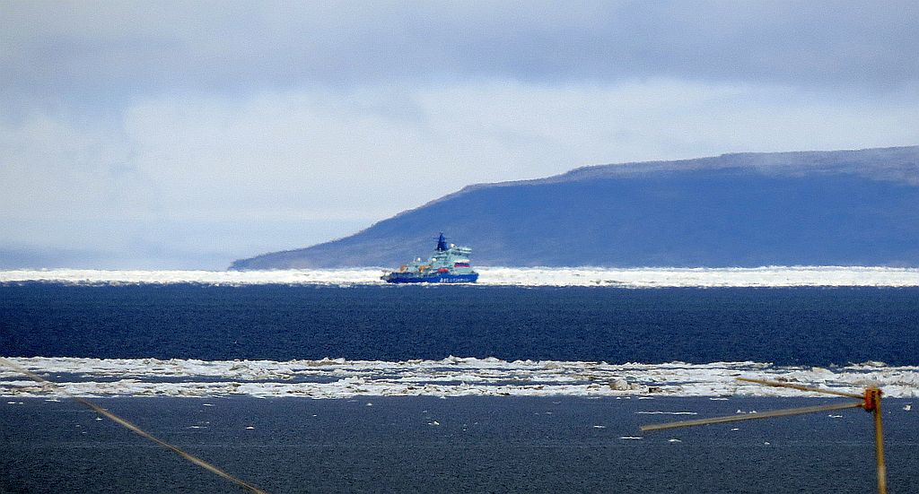 "СевМорПуть" прошёл мимо, просто к берегу прижался. "Сибирь" тоже к берегу взяла.