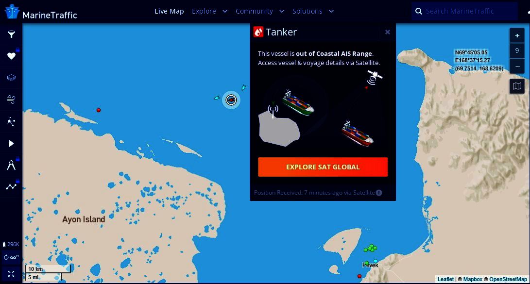 Вот такая в эту навигацию ситуация, что газовозы обходят Айонский ледяной массив с севера, а прочие огибают с запада: