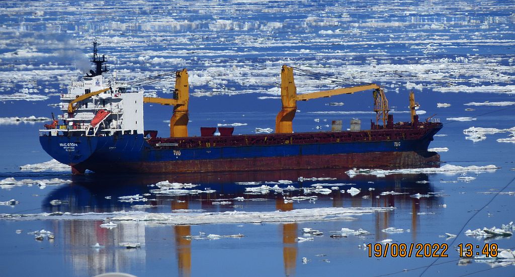 Кроме прошлого сезона в Певеке был дежурный ледокол. В 21-м ограничились спасателем, он убежал при первых признаках ухудшения погоды, льда ещё не было. Сейчас же "Капитан Орлов" висит неделю у Айона. Час назад к нему подоходил "Финвал", было какое-то шевеление, но прошёл дальше. Вероятно, из экономии Ленское пароходство хочет помочь ему "Капитаном Бородкиным", он уже на подходе.