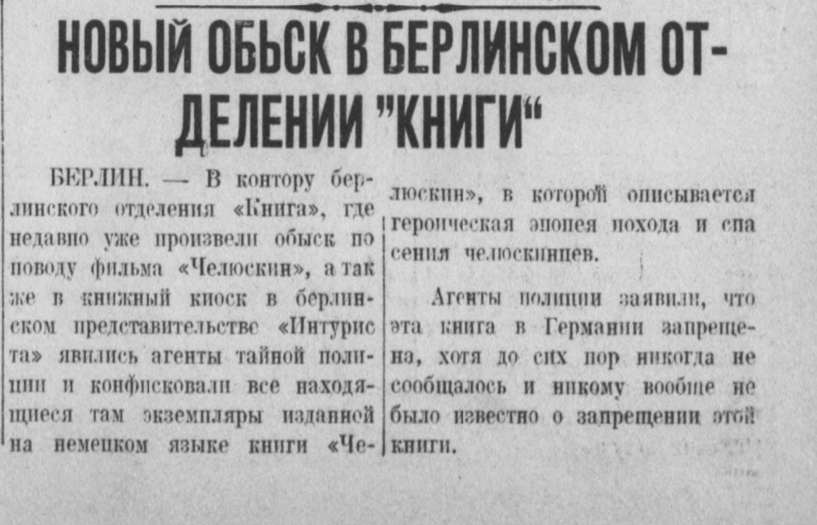 Новый обыск в берлинском отделении "Книги" // Рассвет 25 марта 1935