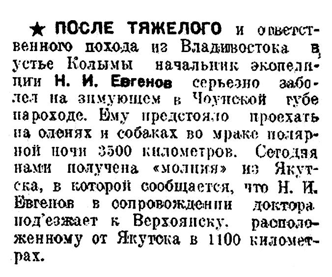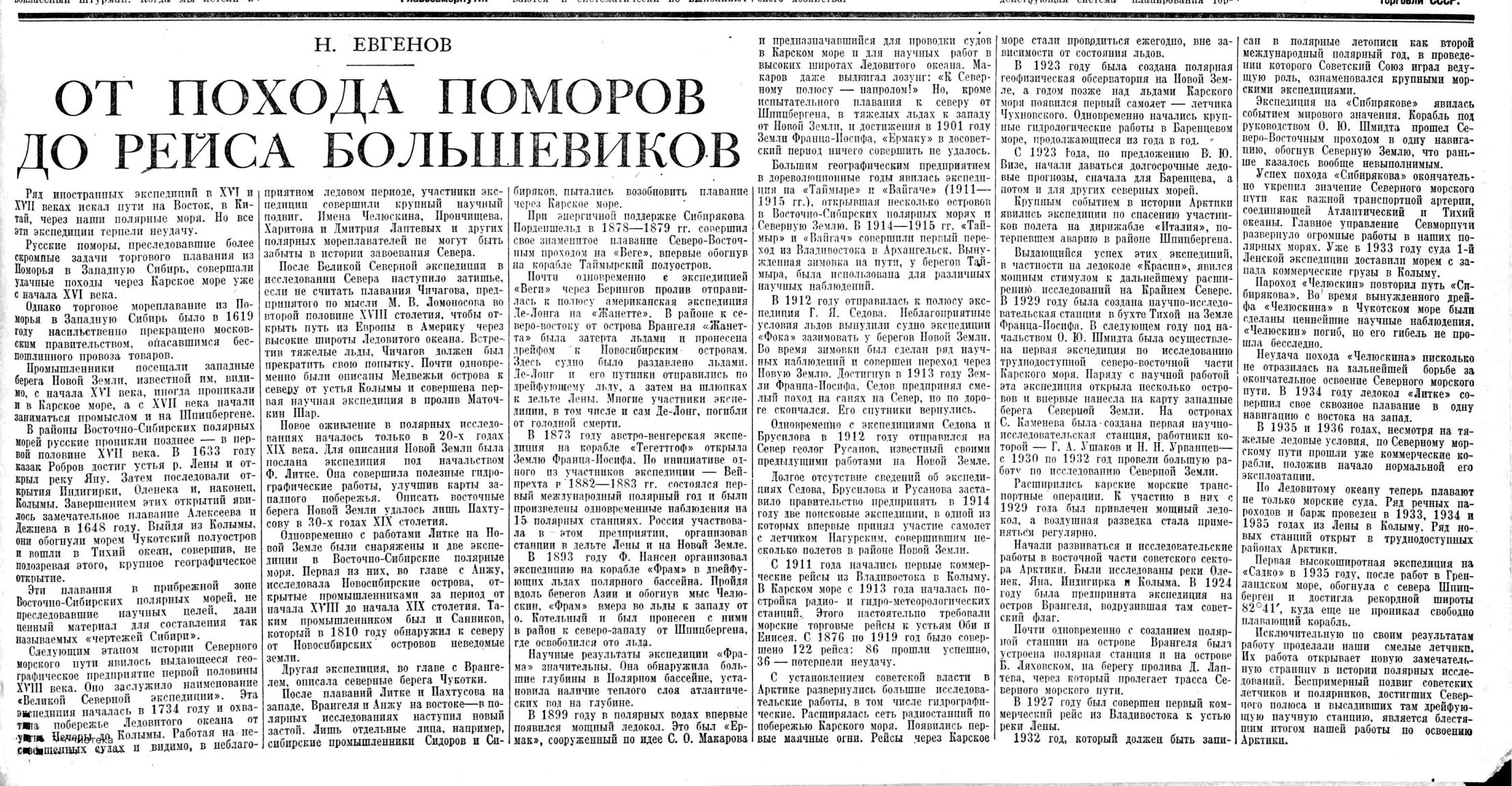 БЕСЕДА С НАЧАЛЬНИКОМ ЭКСПЕДИЦИИ т. Н. И. ЕВГЕНОВЫМ