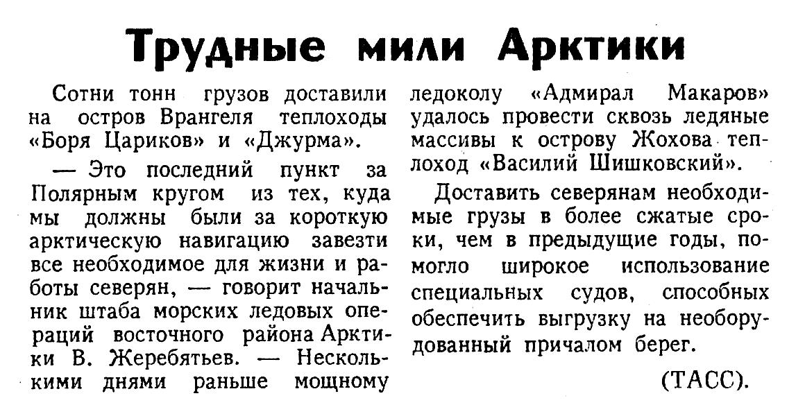 Известия, 1980, № 301 (19671), 23 декабря.По закону мужестваПРИШЛИ НА ПОМОЩЬТеплоход Балтийского морского пароходства «Кировск», который держал курс на колумбийский порт Санта-Марта, попал в Карибском море в жестокий шторм. В борьбе с разбушевавшейся стихией экипаж прилагал максимум старания и организованности. Неожиданно вахтенный Воробьев заметил на горизонте катер, который подавал сигнал бедствия.
