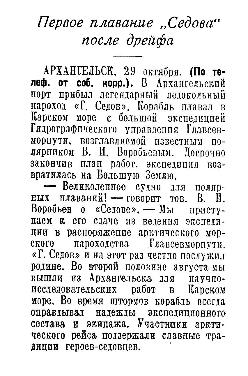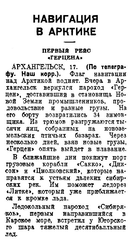 С. Хвастунов сообщил сотруднику «Известий» некоторые подробности арктического плавания парохода «Анатолий Серов».