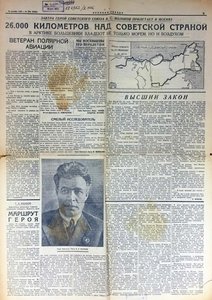 Герой Советского Союза Василий Молоков в общей сложности, включая сюда и эпизодические полёты для ледовой разведки, совершил перелёт общим протяжением свыше 26 000 километров. По своему протяжению перелёт Молокова превышает все дальние перелёты, совершённые за последнее время.