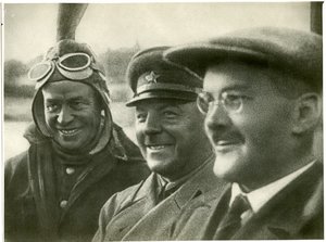 Фотокопия репортажная художественная. «Погрудный портрет Молокова В.С. – Героя Советского Союза на фоне пропеллера гидросамолета СССР-Н-2. Снято на озере Шарташ» Фотограф - Тюфяков Иван Николаевич. г. Свердловск, лето 1936 г.// Источник: из Дома-музея Я.М.Свердлова. Из фондов МБУК "Музей истории Екатеринбурга"