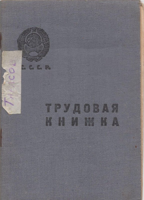 Трудовая книжка Тарасова Д.Н., начатая 11 июля 1939 г. с вкладышем от 9 апреля 1952 г.