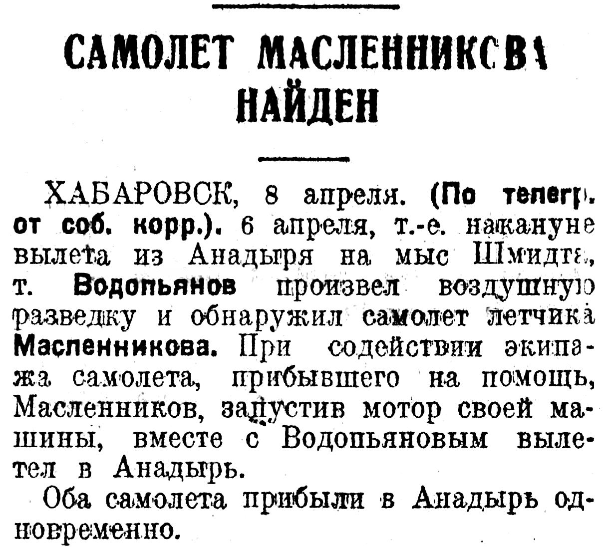 Несмотря на 13 голодных дней, я все-таки мог управлять самолетом. Мы втроем полетели в Анадырь, где произвели посадку, встреченные всеми местными жителями.