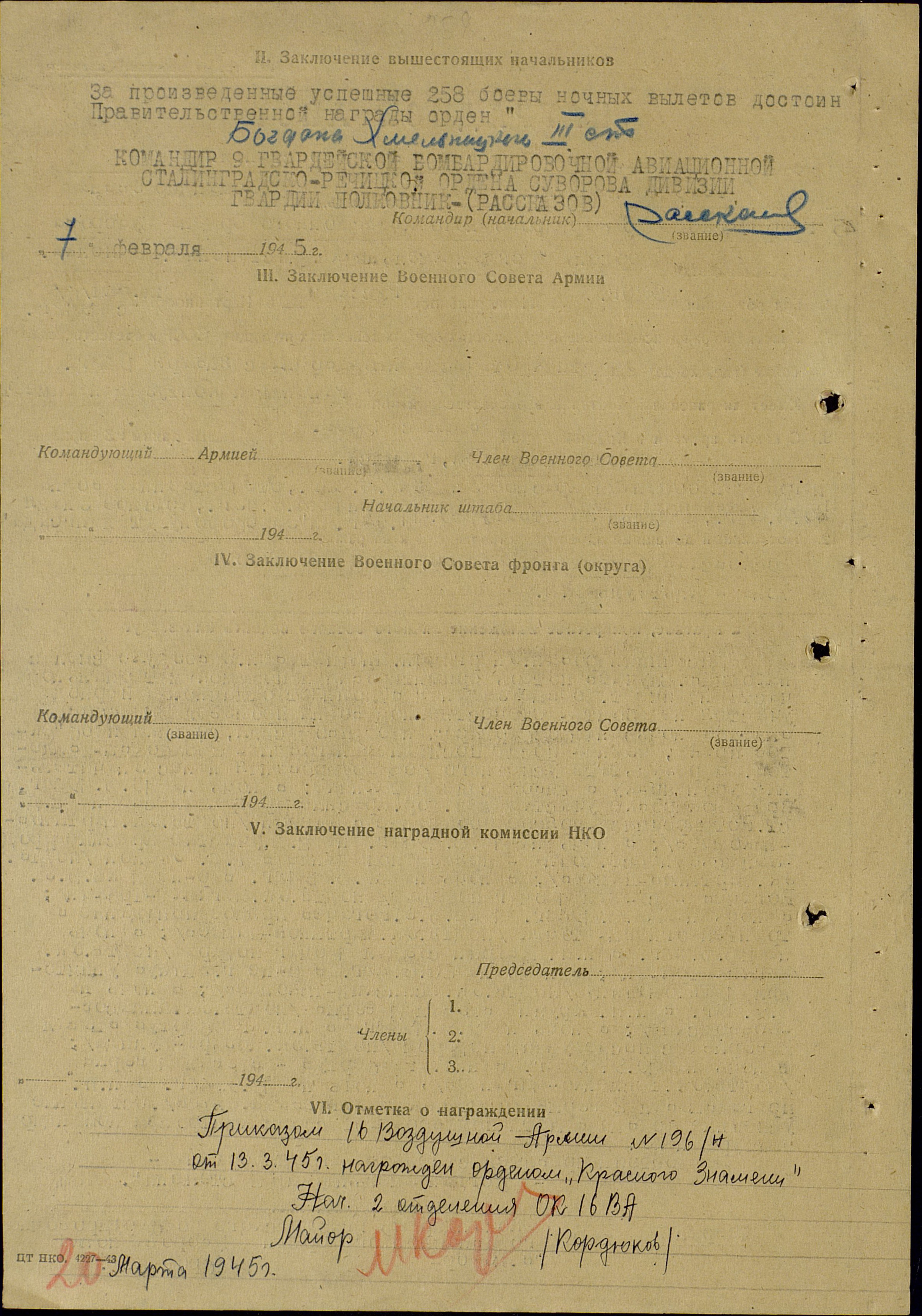 №: 196/н от: 13.03.1945 ВС 16 ВА