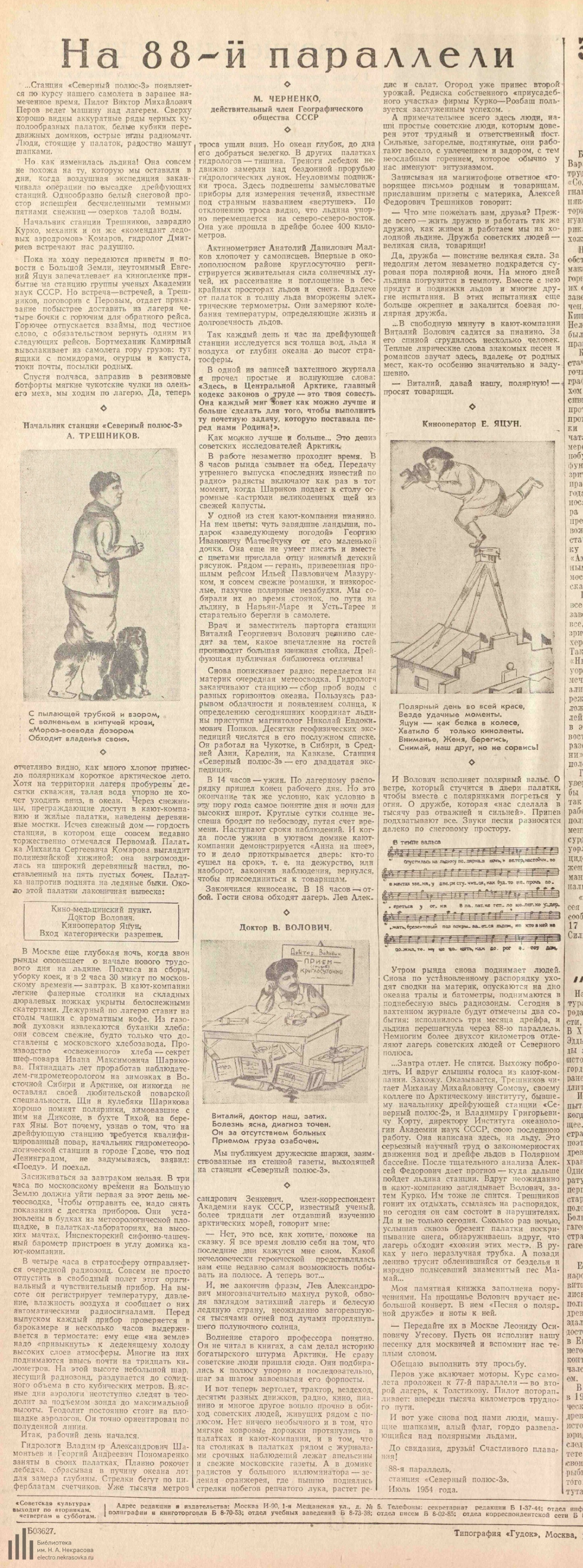 Черненко М. На 88- й параллели //Советская культура, 7 августа, 1954, № 94 (172)