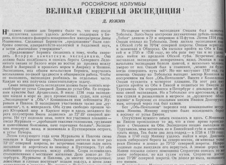 Зубов Н.Великая Северная экспедиция//Красный флот, 1941, № 129 (783), 4 июня