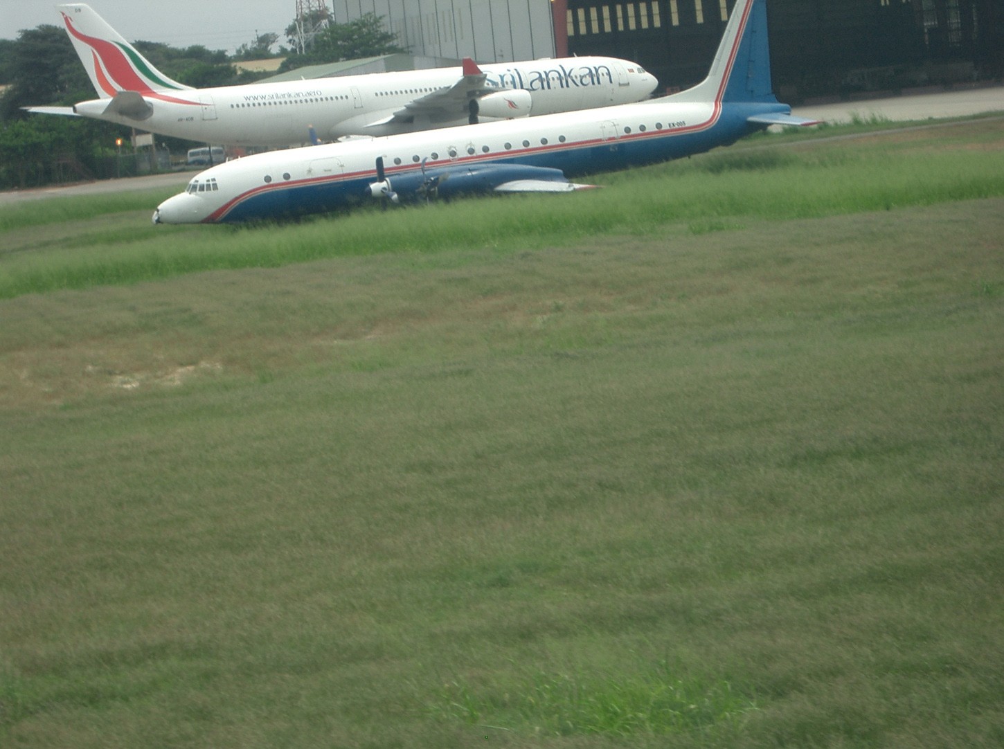Так погибают легенды. Повреждённый бывший Ил-18Д «СССР-74267» - Ил-18ГР «EX-005» в аэропорту Коломбо (Шри-Ланка), 27 октября 2004 г. Фото Сергея Горелова.// https://russianplanes.net/id93807